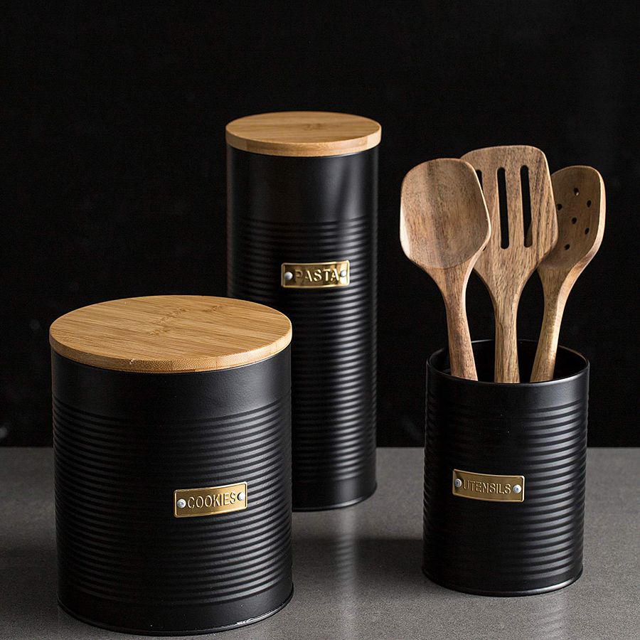Емкость для хранения столовых приборов Otto поможет максимально освободить рабочее пространство на вашей кухне. Эргономичный контейнер выполнен из углеродистой стали, которая отличается прочностью и износостойкостью. При создании изделия дизайнеры используют золотистый декор, который безупречно сочетается с матовым покрытием черного цвета. Благодаря этому емкость добавит элегантности классическому и современному интерьеру кухни.