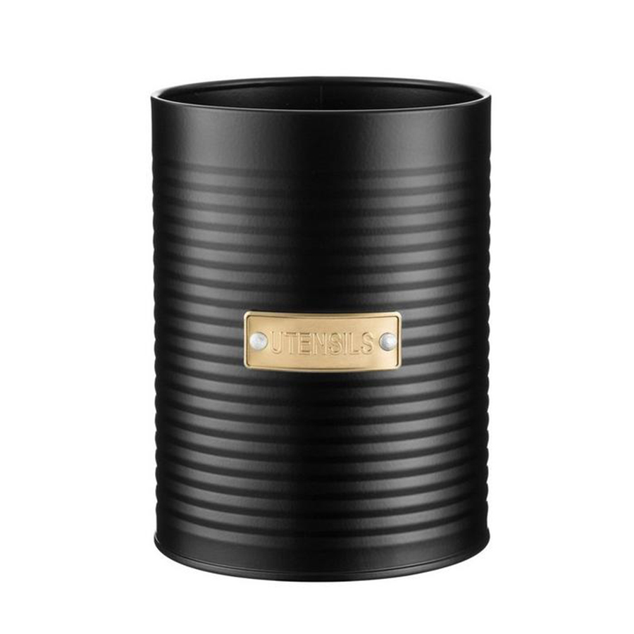 Емкость для хранения столовых приборов Otto поможет максимально освободить рабочее пространство на вашей кухне. Эргономичный контейнер выполнен из углеродистой стали, которая отличается прочностью и износостойкостью. При создании изделия дизайнеры используют золотистый декор, который безупречно сочетается с матовым покрытием черного цвета. Благодаря этому емкость добавит элегантности классическому и современному интерьеру кухни.