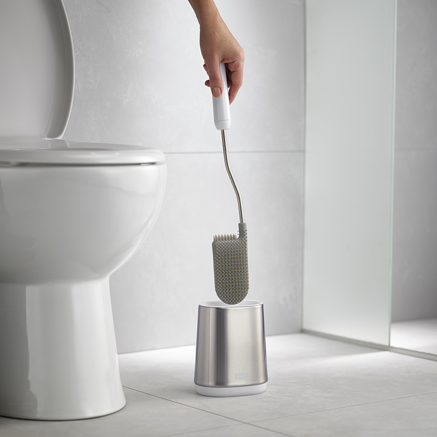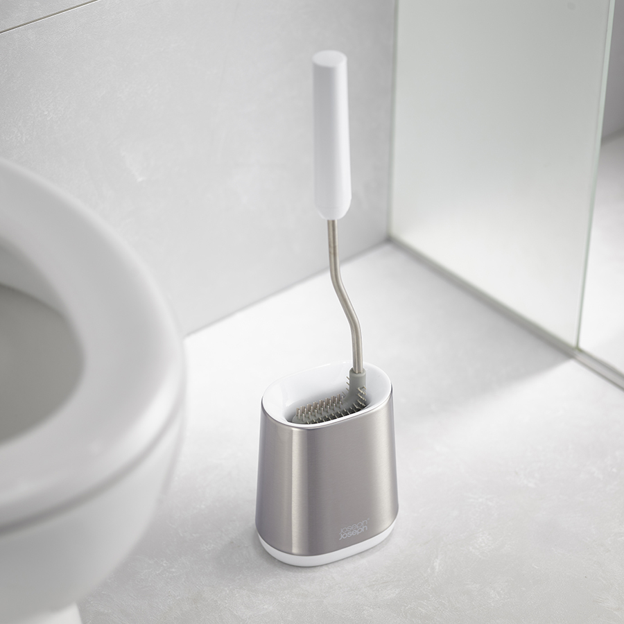 Гибкая полимерная щетка D-образной формы эффективно очищает все труднодоступные места и не впитывает воду. Особенность ёршика – практичная конструкция с защитой от засорения. Широкое расстояние между щетинками не дает грязи скапливаться. После уборки ёршик не надо стряхивать, пытаясь очистить и высушить, благодаря уникальному дизайну Flex™, вода быстро стекает со щетки и не оставляет лишних капель. Аксессуар дополнен подставкой с отделкой из нержавеющей стали, которая полностью скрывает щетину и обеспечивает аккуратное хранение.