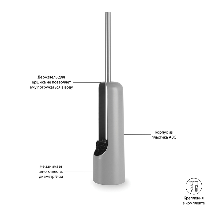 Ершик для унитаза в лаконичном дизайне впишется в любой интерьер санузла.
