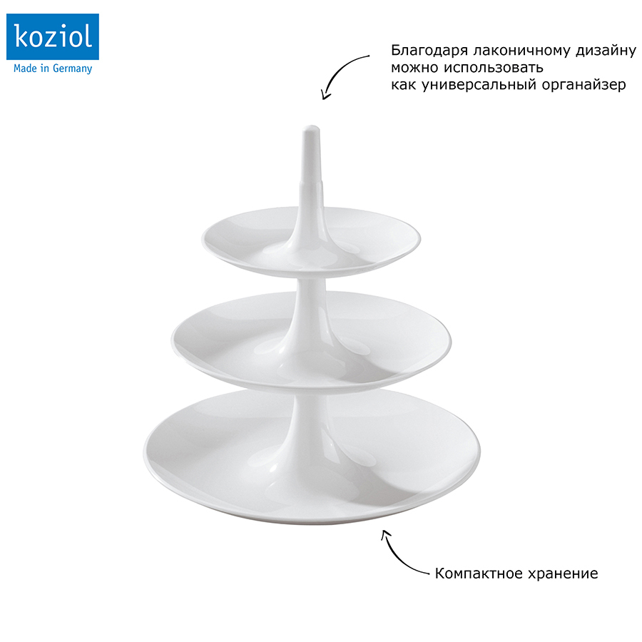 Этажерка BABELL успешно справится с сервировкой фруктов, десертов и закусок, не занимая много места на праздничном столе. После использования компактно складывается в обратном порядке. Благодаря лаконичному дизайну её можно использовать как универсальный органайзер Особенности: - компактное хранение Производство: Германия