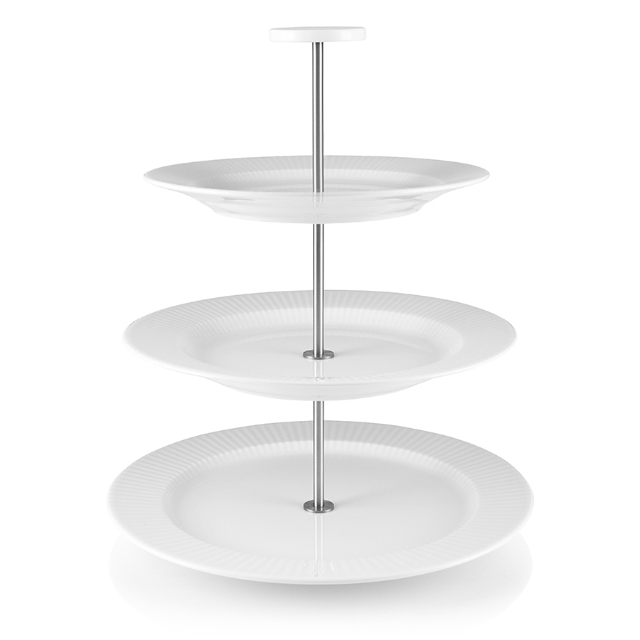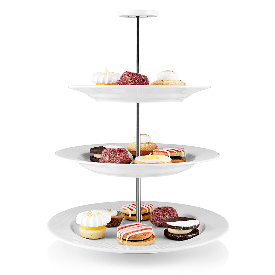 Изысканная трехъярусная этажерка позволит красиво сервировать фрукты, пирожные и всевозможные сладости, при этом сэкономив место на столе.