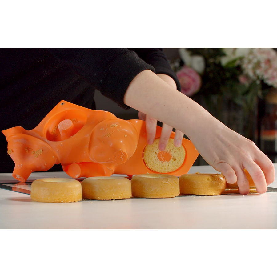Форма выдерживает температуру от - 60 до + 230 °С. Силикон не содержит вредный бисфенол-А и соответствует европейским стандартам качества. Он не имеет запаха и не дымится во время готовки. Материал гибкий, прочный, устойчивый к перепадам температур. Форма выдерживает до 3000 использований. Перед использованием необходимо смазать изделие маслом. Диаметр ячейки - 7,5 см.