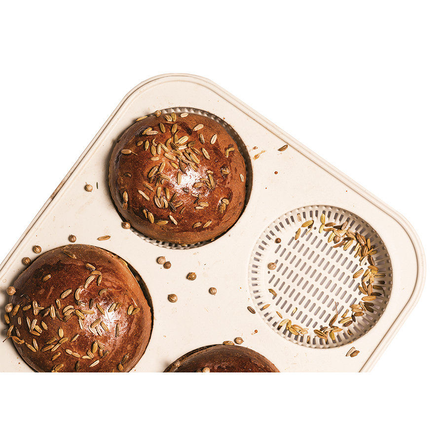 Форма поможет легко приготовить домашние булочки для гамбургеров или пирожные.