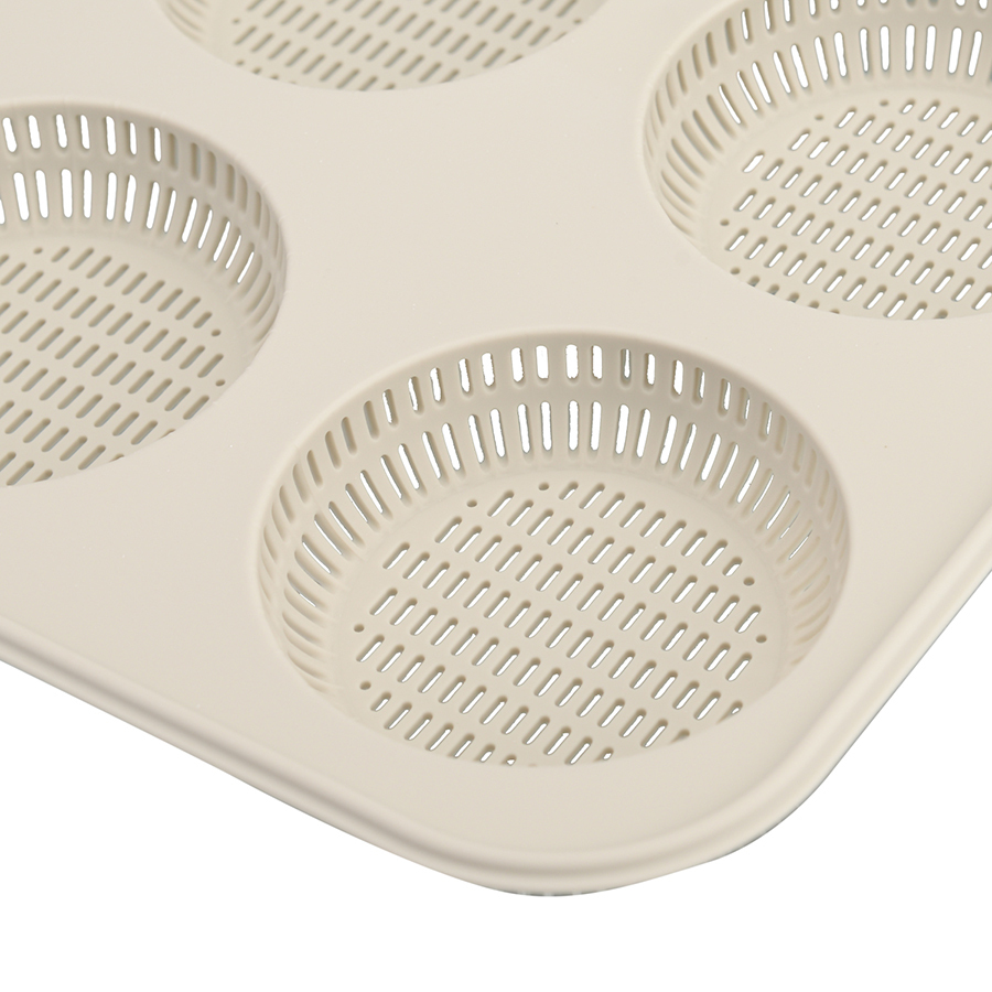 Изделие выдерживает температуру от -60 до +230°С и до 3000 использований. Перфорированное дно обеспечивает свободную циркуляцию жара и препятствует образования конденсата. Материал не содержит вредный бисфенол-А и соответствует европейским стандартам качества. Силикон гибкий, прочный, устойчивый к перепадам температуры, не имеет запаха и не дымится во время готовки. Перед применением необходимо смазать форму маслом.
