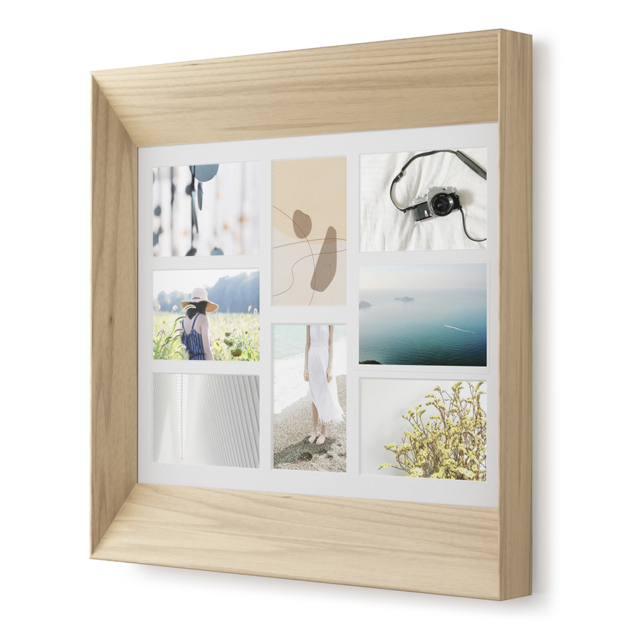 Фоторамка вмещает 8 фото по 10 х 15 см, а если вытащить специальную вставку - одно большое фото 35 х 46 см. Поставляется со всем необходимым монтажным оборудованием.