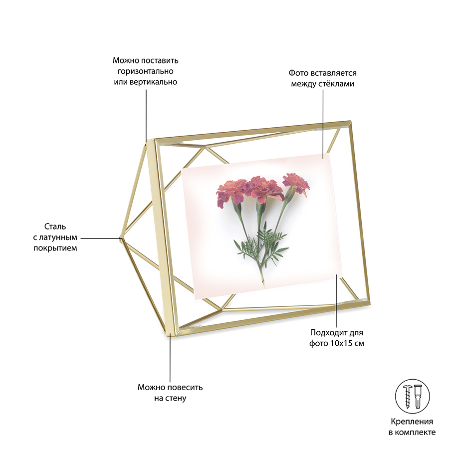Настоящий алмаз вашей комнаты! Вдохновленная огранкой бриллиантов форма этой рамки привлекает внимание и вызывает восхищение – очень необычная вещица. Но её достоинство в том, что она не отвлекает от главного – от фотографии внутри. Подходит для фото размером 10х15 см. Фотография вставляется между двух стёкол, которые легко вынимаются, если снять внутренние силиконовые крепления. Поставляется в подарочной упаковке (закрытой коробочке). Дизайнер Joel Yatscoff