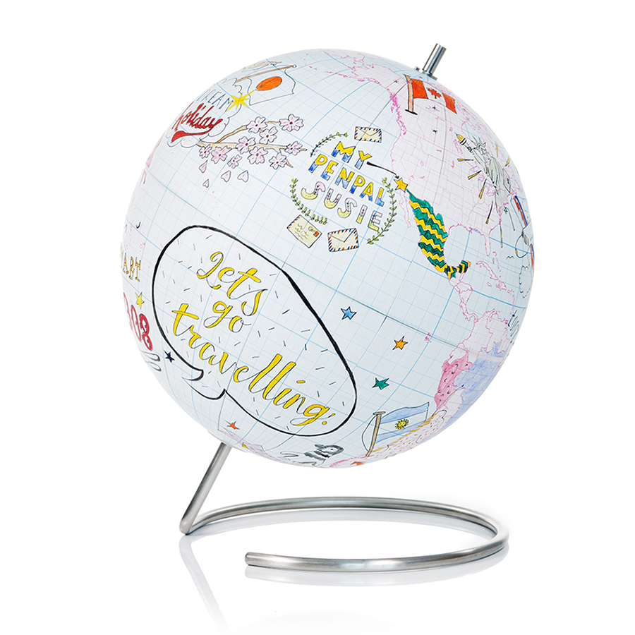 Создайте собственный журнал путешествий, отмечая на карте места, в которые хотели бы отправиться и которые уже успели посетить. С помощью мини-макета Земного шара сделать это легко и просто! Используйте ручки, карандаши и маркеры, чтобы разукрасить континенты и страны. Отображайте на пустом холсте яркую и красочную историю своих путешествий, отмечайте интересные места и планируйте дальнейшие поездки. Проявите немного фантазии, рисуйте и вдохновляйтесь на новые свершения. Дизайн Suck Uk