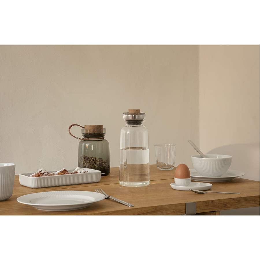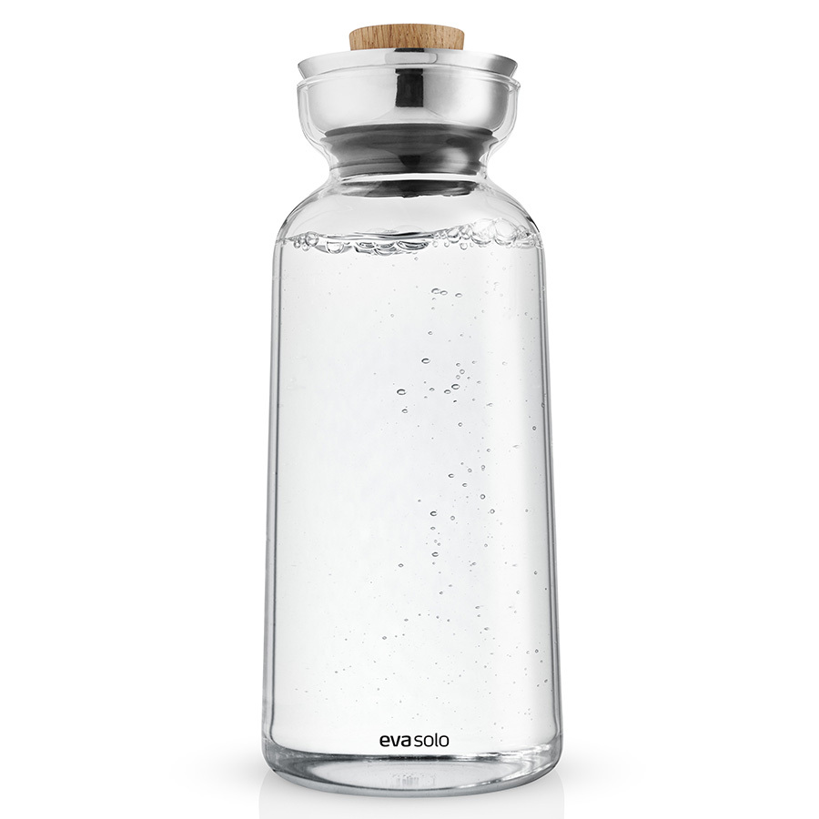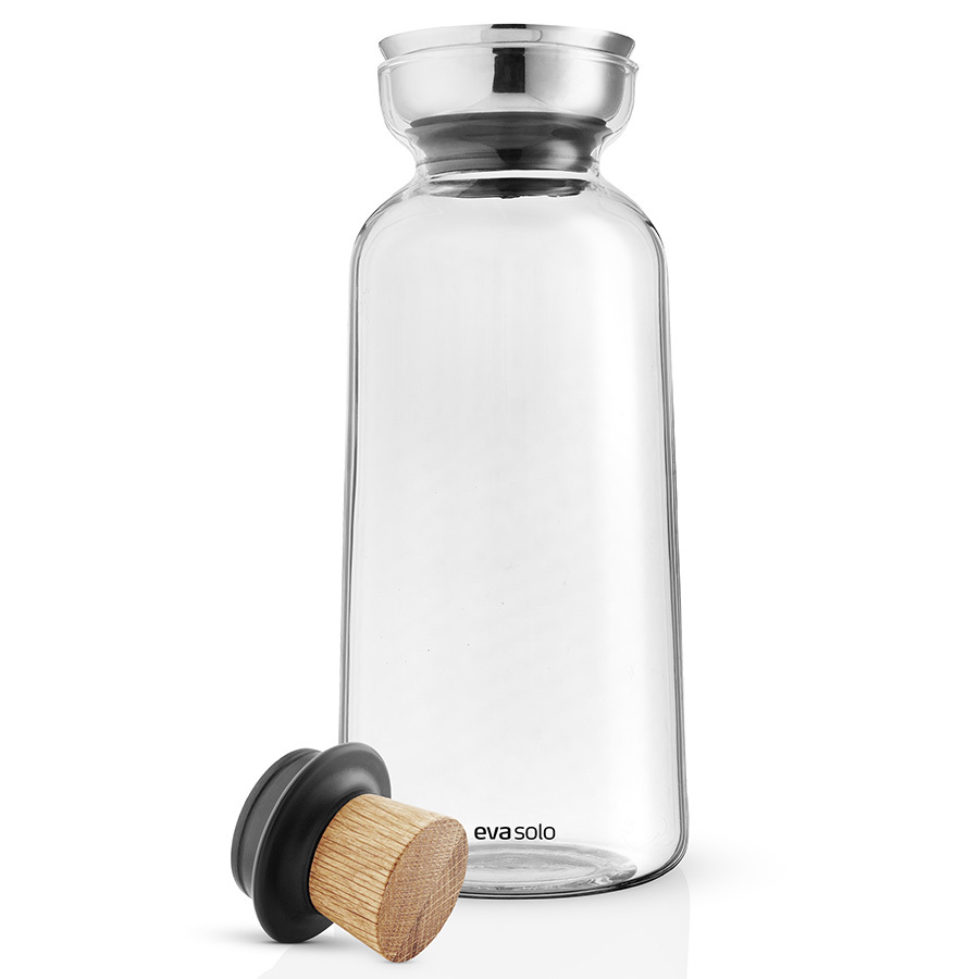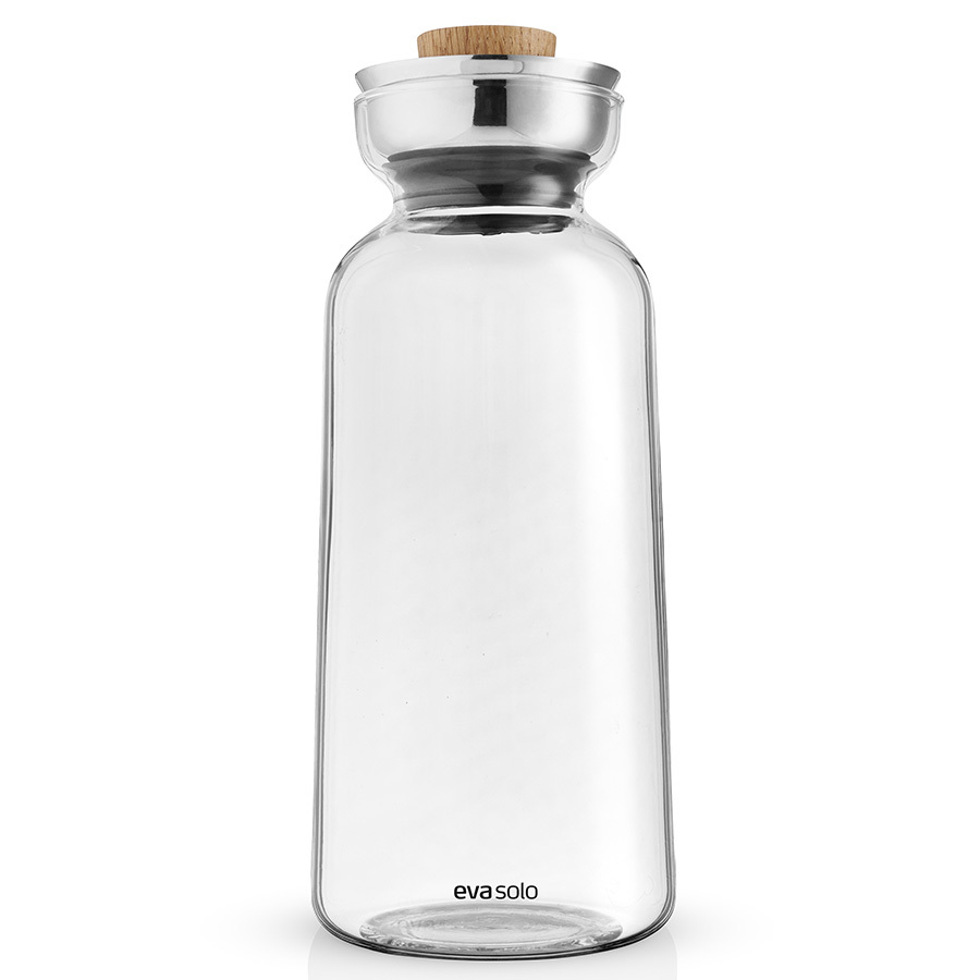 Колба выполнена из прочного боросиликатного стекла. Крышка сделана из промасленного дуба. Специальный ободок из нержавеющей стали предотвращает проливание. Графин помещается на полках в дверцах большинства моделей холодильников.