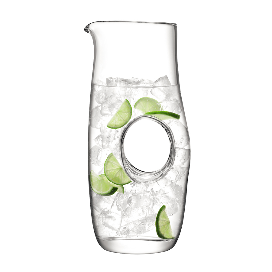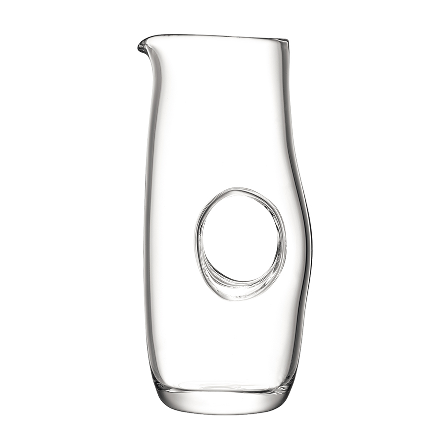 Высокий кувшин Void – стильная посуда для сервировки стола. Оригинальная форма и прозрачное стекло делают кувшин универсальным для различных напитков. Эллиптическая полость, образуемая во время выдувания, создает ручку для удобного разлива воды или сока.