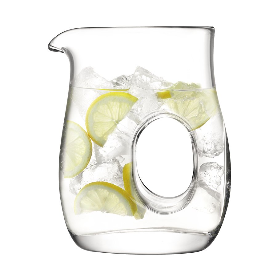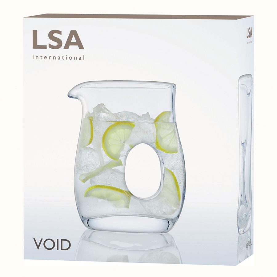 Кувшин Void – стильная посуда для сервировки стола. Оригинальная форма и прозрачное стекло делают кувшин универсальным для различных напитков. Эллиптическая полость, образуемая во время выдувания, создает ручку для удобного разлива воды или сока.
