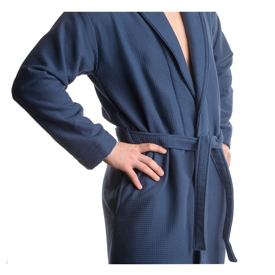 Банный халат подарит ощущение нежности и уюта после принятия душа. Внешняя сторона произведена из прочного вафельного хлопка, а внутрення – из мягкой махры. Изделие отлично впитывает влагу, оставляя приятное ощущение свежести и чистоты. Халат отличается особенной износостойкостью, хорошо держит форму и сохраняет качественные свойства на протяжении долгого времени. Модель с шалевым воротником дополнена двумя карманами по бокам. Плотность ткани - 429GSM. Размер L/XL Ширина линии плеч – 52 см Длина рукава – 62 см Ширина груди – 58 см Длина пояса – 182 см Длина изделия – 128 см Ширина изделия – 136 см ! Максимальная температура стирки 40° C ! Гладить при максимальной температуре 110° C ! Барабанная сушка запрещена ! Не отбеливать ! Сухая чистка запрещена