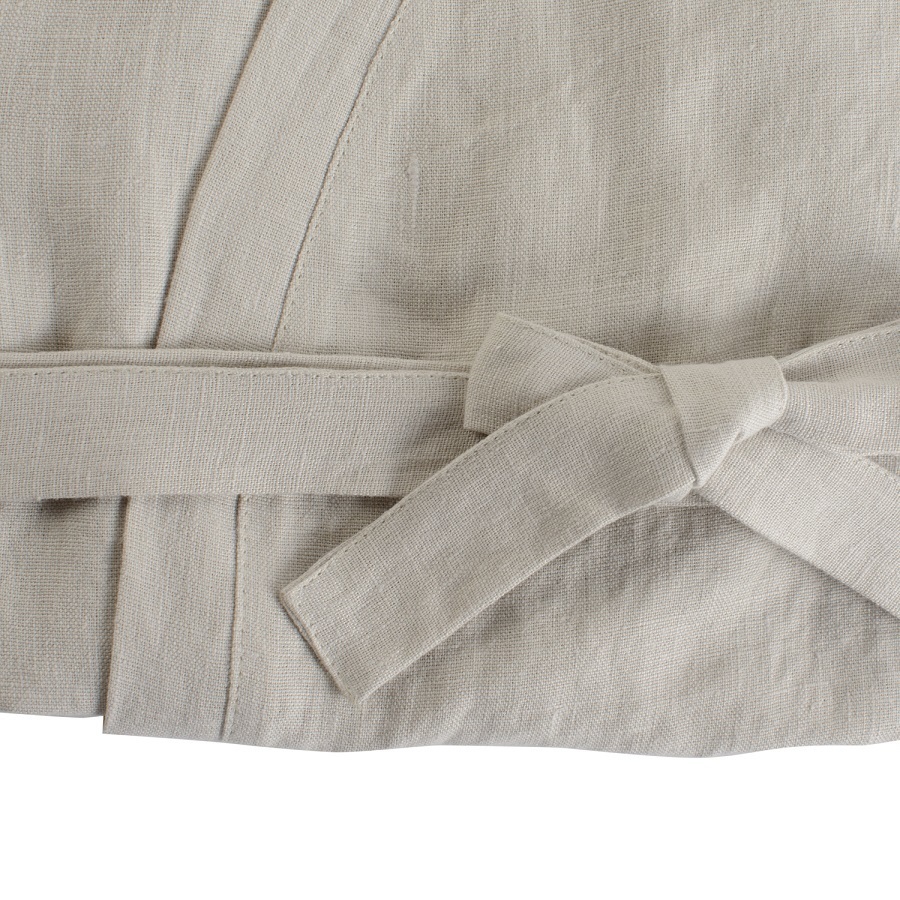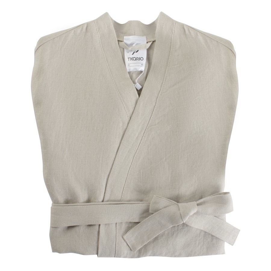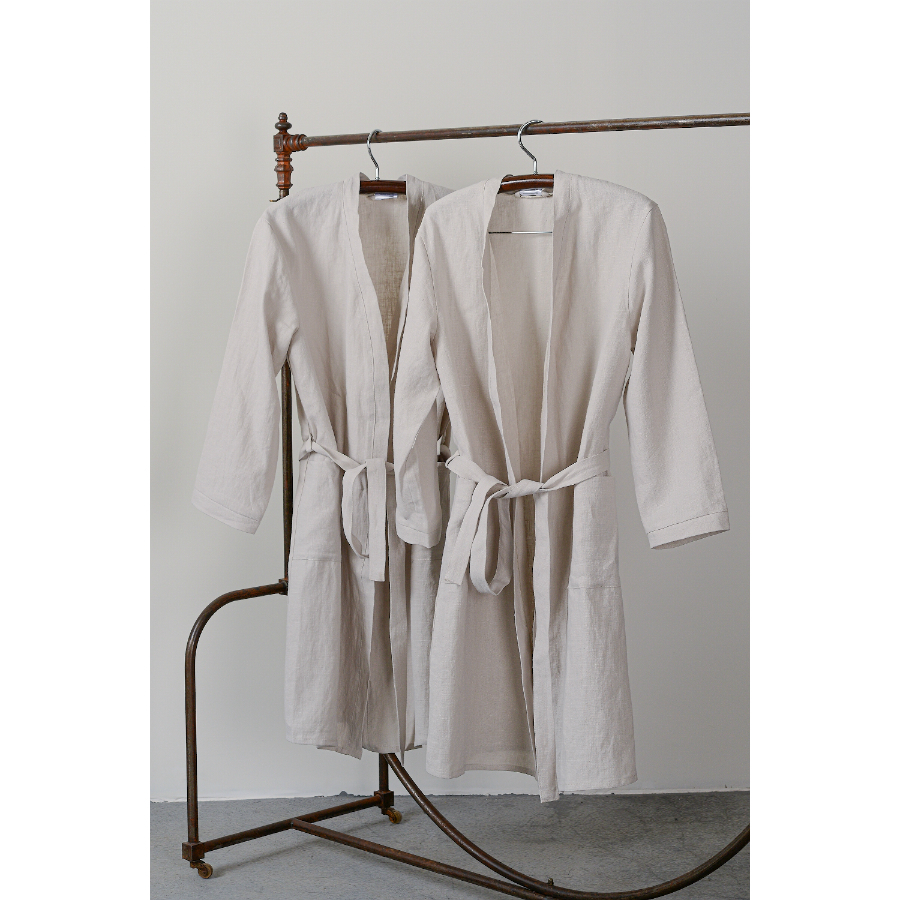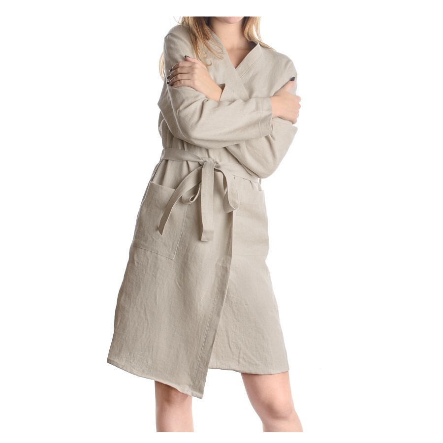 Халат из умягченного льна подарит ощущение нежности и уюта после водных процедур. Приятное к телу изделие отличается высокой гигроскопичностью: легкий и при этом прочный лен хорошо впитывает влагу и пропускает воздух. Банный аксессуар обязательно понравится тем, кто заботится о своем комфорте и ценит качественные ткани. Изделие с двумя накладными карманами фиксируется длинным поясом в тон. Плотность ткани - 280GSM. Размер M Ширина линии плеч – 48 см Длина рукава – 56 см Ширина груди – 50 см Длина пояса – 200 см Длина изделия – 100 см Ширина изделия – 128 см ! Максимальная температура стирки 40° C ! Гладить запрещено ! Возможна барабанная сушка при низкой температуре ! Не отбеливать ! Возможна сухая чистка
