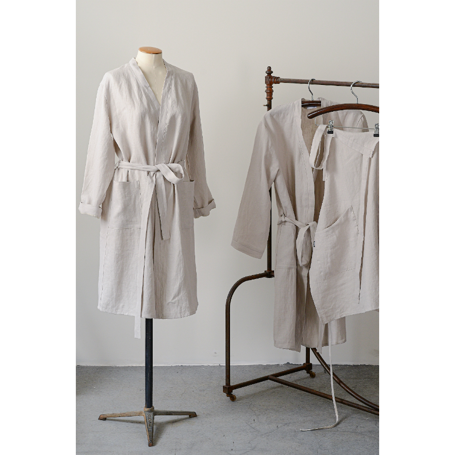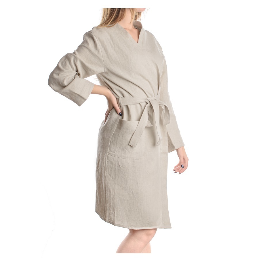Халат из умягченного льна подарит ощущение нежности и уюта после водных процедур. Приятное к телу изделие отличается высокой гигроскопичностью: легкий и при этом прочный лен хорошо впитывает влагу и пропускает воздух. Банный аксессуар обязательно понравится тем, кто заботится о своем комфорте и ценит качественные ткани. Изделие с двумя накладными карманами фиксируется длинным поясом в тон. Плотность ткани - 280GSM. Размер S Ширина линии плеч – 44 см Длина рукава – 54 см Ширина груди – 48 см Длина пояса – 200 см Длина изделия – 100 см Ширина изделия – 126 см ! Максимальная температура стирки 40° C ! Гладить запрещено ! Возможна барабанная сушка при низкой температуре ! Не отбеливать ! Возможна сухая чистка