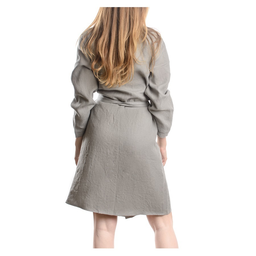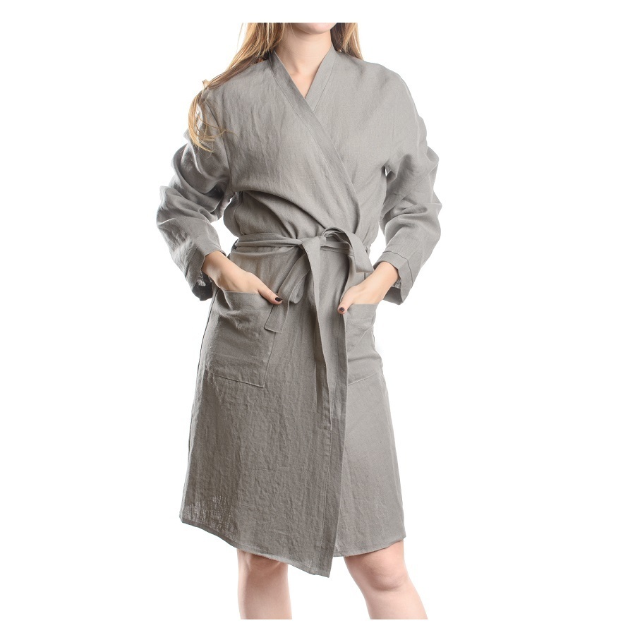 Халат из умягченного льна подарит ощущение нежности и уюта после водных процедур. Приятное к телу изделие отличается высокой гигроскопичностью: легкий и при этом прочный лен хорошо впитывает влагу и пропускает воздух. Банный аксессуар обязательно понравится тем, кто заботится о своем комфорте и ценит качественные ткани. Изделие с двумя накладными карманами фиксируется длинным поясом в тон. Плотность ткани - 280GSM. Размер M Ширина линии плеч – 48 см Длина рукава – 56 см Ширина груди – 50 см Длина пояса – 200 см Длина изделия – 100 см Ширина изделия – 128 см ! Максимальная температура стирки 40° C ! Гладить запрещено ! Возможна барабанная сушка при низкой температуре ! Не отбеливать ! Возможна сухая чистка