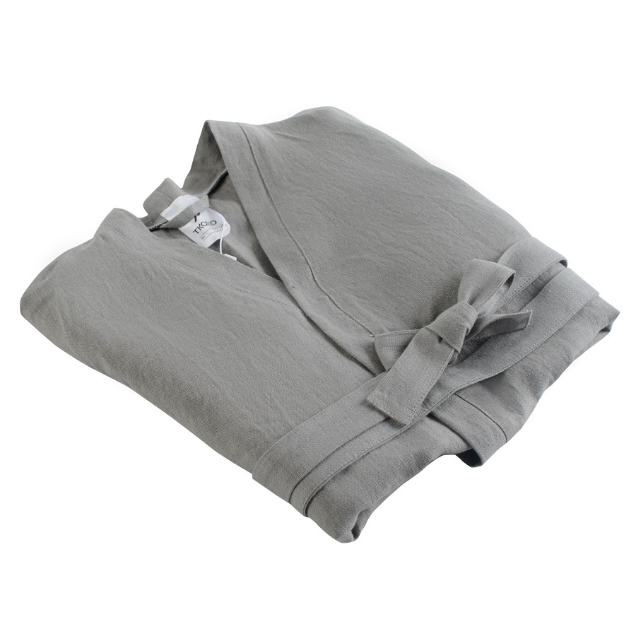 Халат из умягченного льна подарит ощущение нежности и уюта после водных процедур. Приятное к телу изделие отличается высокой гигроскопичностью: легкий и при этом прочный лен хорошо впитывает влагу и пропускает воздух. Банный аксессуар обязательно понравится тем, кто заботится о своем комфорте и ценит качественные ткани. Изделие с двумя накладными карманами фиксируется длинным поясом в тон. Плотность ткани - 280GSM.