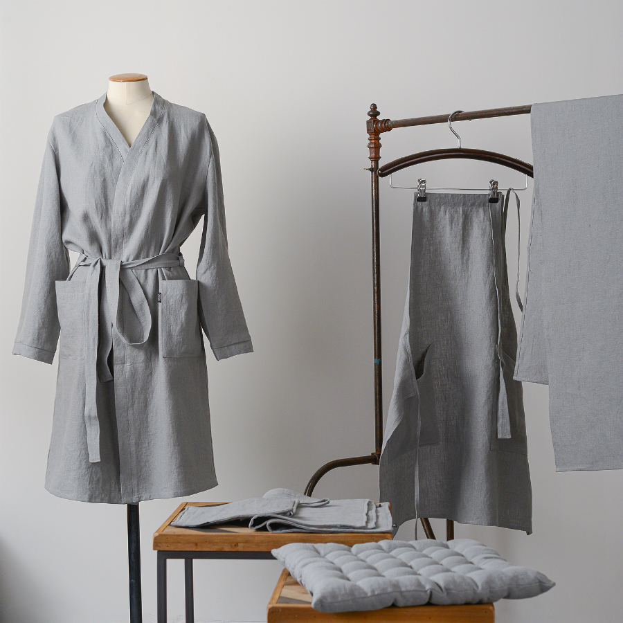 Халат из умягченного льна подарит ощущение нежности и уюта после водных процедур. Приятное к телу изделие отличается высокой гигроскопичностью: легкий и при этом прочный лен хорошо впитывает влагу и пропускает воздух. Банный аксессуар обязательно понравится тем, кто заботится о своем комфорте и ценит качественные ткани. Изделие с двумя накладными карманами фиксируется длинным поясом в тон. Плотность ткани - 280GSM. Размер S Ширина линии плеч – 44 см Длина рукава – 54 см Ширина груди – 48 см Длина пояса – 200 см Длина изделия – 100 см Ширина изделия – 126 см ! Максимальная температура стирки 40° C ! Гладить запрещено ! Возможна барабанная сушка при низкой температуре ! Не отбеливать ! Возможна сухая чистка