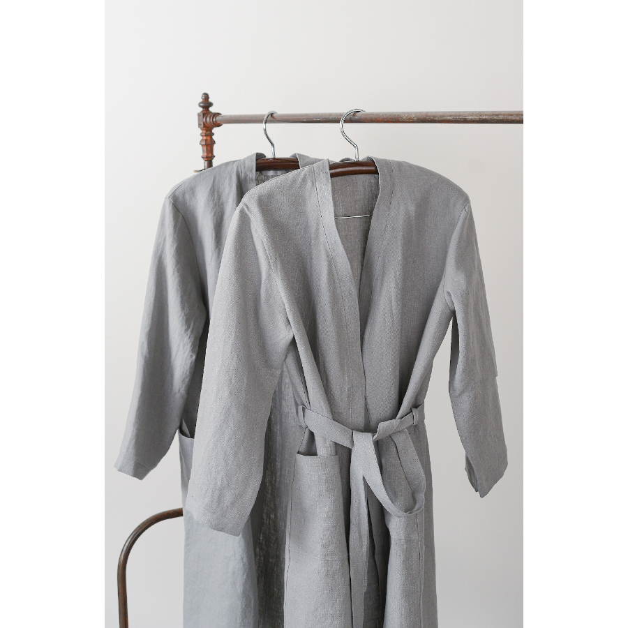 Халат из умягченного льна подарит ощущение нежности и уюта после водных процедур. Приятное к телу изделие отличается высокой гигроскопичностью: легкий и при этом прочный лен хорошо впитывает влагу и пропускает воздух. Банный аксессуар обязательно понравится тем, кто заботится о своем комфорте и ценит качественные ткани. Изделие с двумя накладными карманами фиксируется длинным поясом в тон. Плотность ткани - 280GSM.