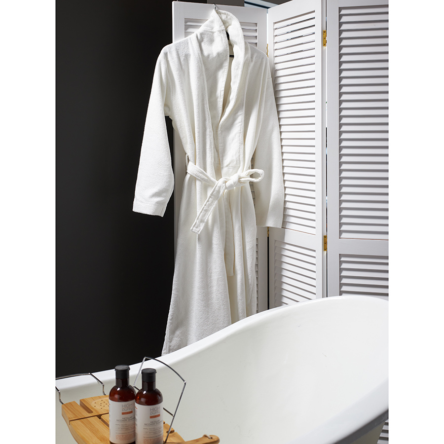 Халат махровый белого цвета из коллекции Essential подарит чувство комфорта после ванны и душа. Мягкая, при этом прочная ткань изготавливается из лучших сортов длинноволокнистого хлопка методом тщательного прочесывания, что значительно улучшает эксплуатационные характеристики готового изделия. Материал устойчив к износу, быстро впитывает влагу, оставляя приятное ощущение свежести и чистоты. Халат хорошо держит форму и сохраняет привлекательный вид после множества стирок. Модель с шалевым воротником дополнена двумя карманами и широким поясом.