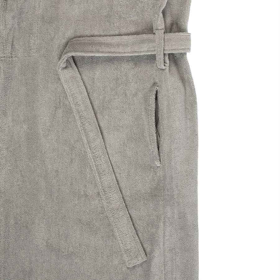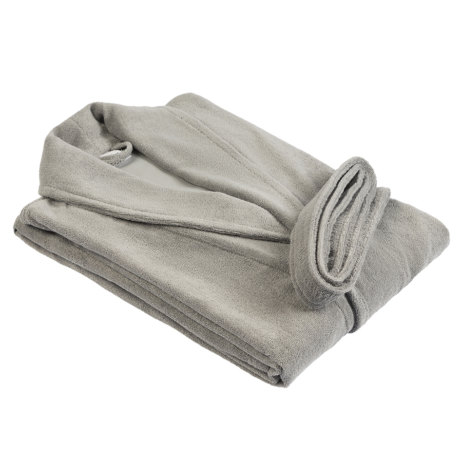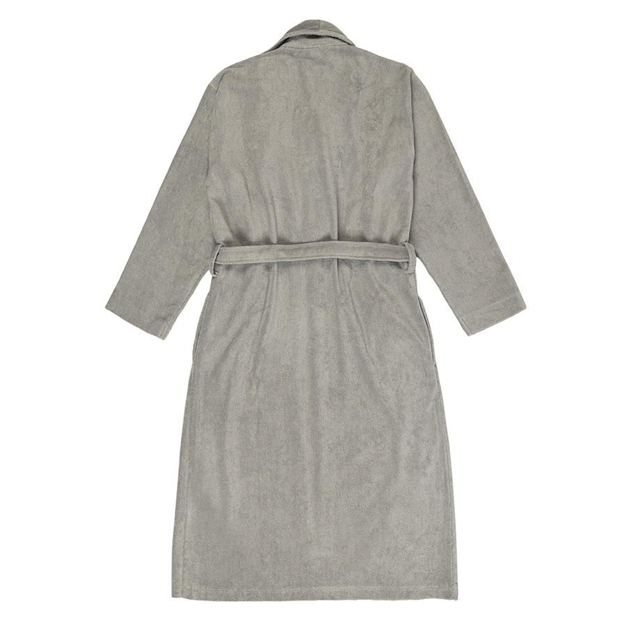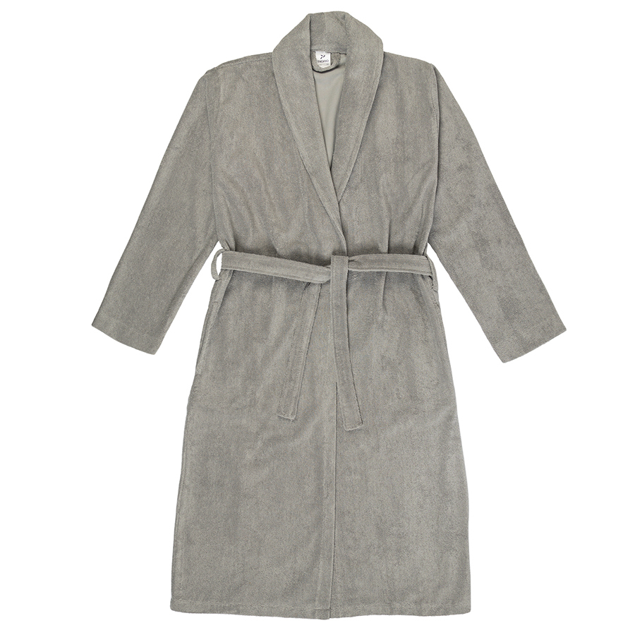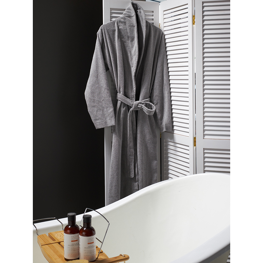 Халат махровый серого цвета из коллекции Essential подарит чувство комфорта после ванны и душа. Мягкая, при этом прочная ткань изготавливается из лучших сортов длинноволокнистого хлопка методом тщательного прочесывания, что значительно улучшает эксплуатационные характеристики готового изделия. Материал устойчив к износу, быстро впитывает влагу, оставляя приятное ощущение свежести и чистоты. Халат хорошо держит форму и сохраняет привлекательный вид после множества стирок. Модель с шалевым воротником дополнена двумя карманами и широким поясом.