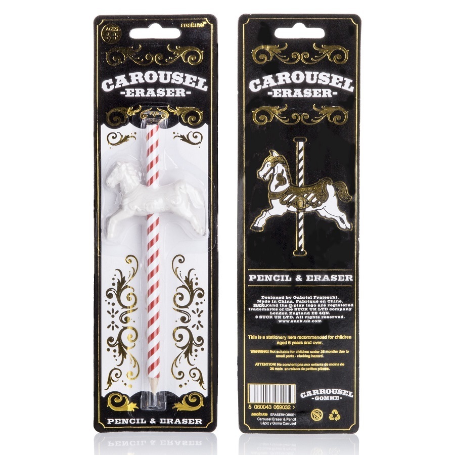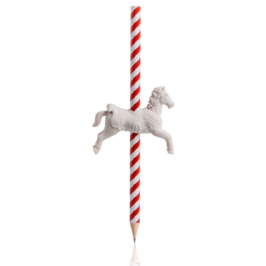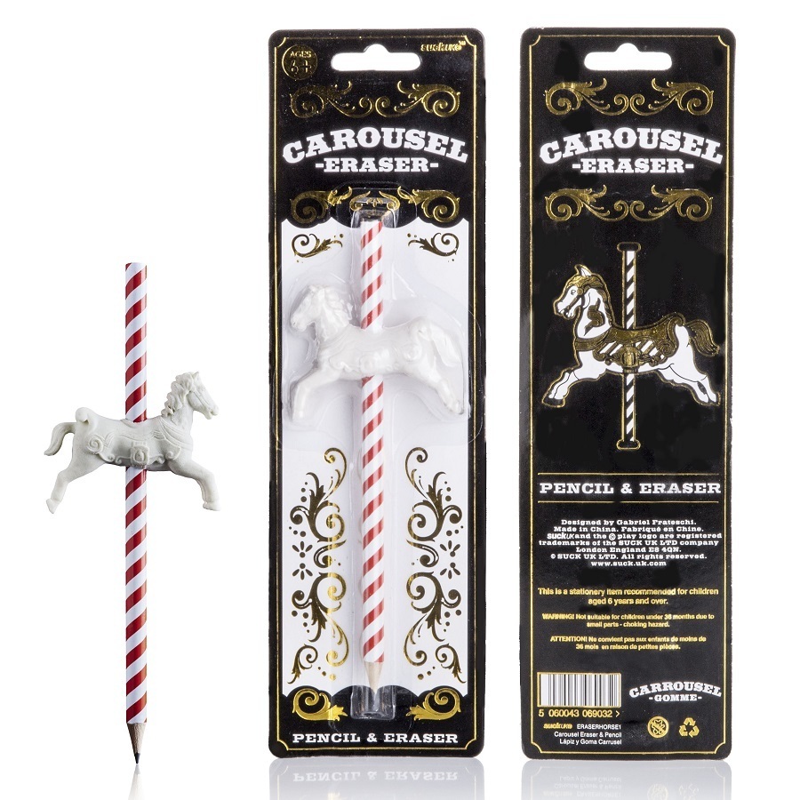 Карандаш с резинкой от Suck UK – милый и стильный сувенир, который понравится и детям, и взрослым. Необычное оформление привлекает внимание, вдохновляет, дарит ощущение праздника. Графитовый стержень мягкий, не повреждает бумагу, при помощи резинки в форме лошадки всегда можно откорректировать надпись или рисунок.