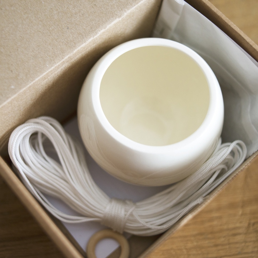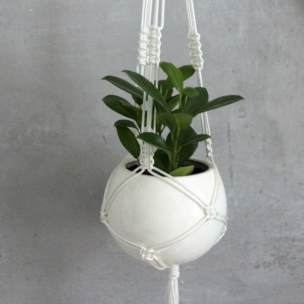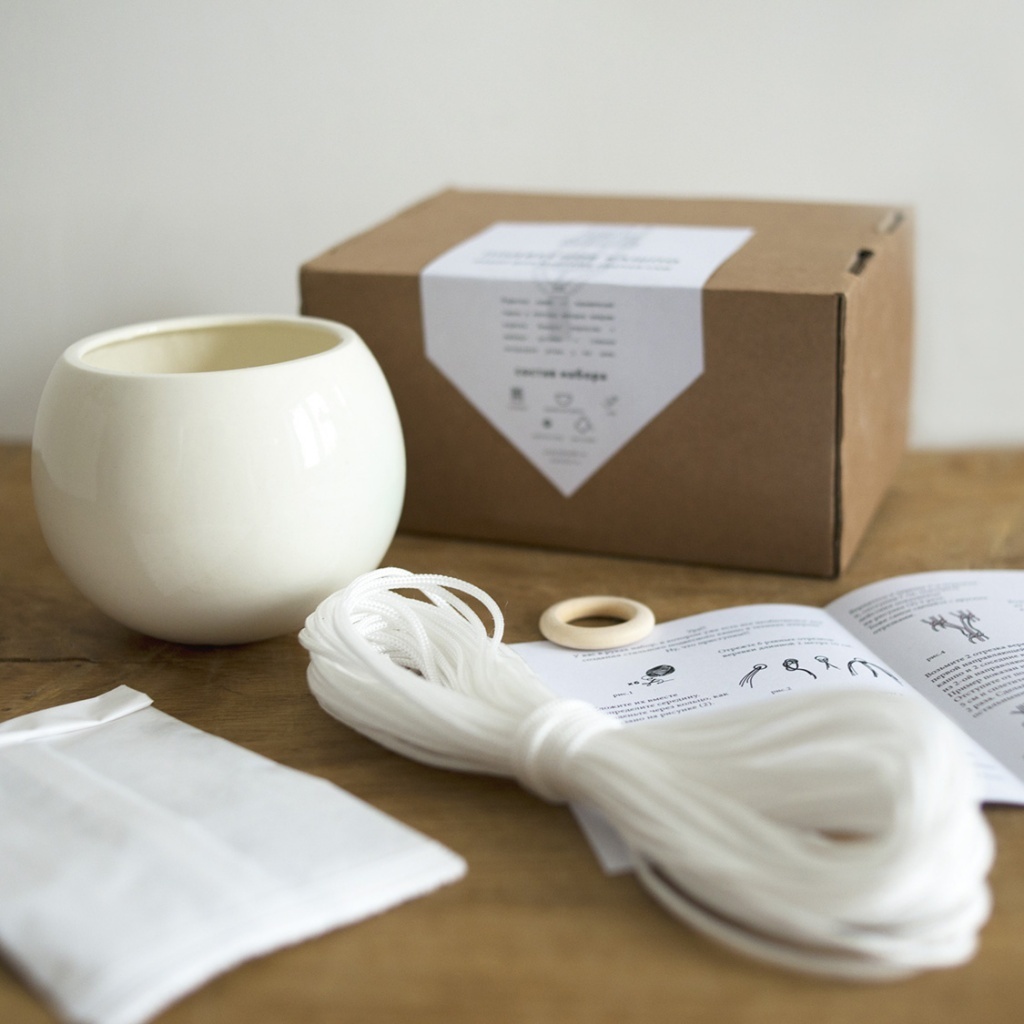 Теперь не только выращиваем, но и плетем! Ведь природа и творчество должны быть всегда вместе. Именно поэтому в нашей Мастерской новинка: керамическое кашпо + набор для плетения макраме. Мы за разнообразие, фантазию и творческий подход во всём. И продолжаем модельный ряд подвесных кашпо новыми геометрическими фигурами! С помощью наших кашпо в виде шара, куба и цилиндра вы сможете стильно декорировать помещение, балкон и придомовую территорию, самостоятельно смастерив сеть для подвешивания керамического горшка и высадив в нем любимые цветы. Диаметр - 8,5 см. В комплекте прилагаются: - керамическое кашпо; - грунт; - семена; - нить для плетения; - подвесное кольцо; - инструкция.