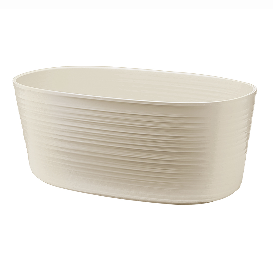 Кашпо для комнатных растений выполнено из переработанного пластика. Дизайн изделия напоминает керамику, а реалистичности внешнему виду придают тщательно подобранные пастельные тона и неровные круговые узоры, создающие эффект ручной работы.