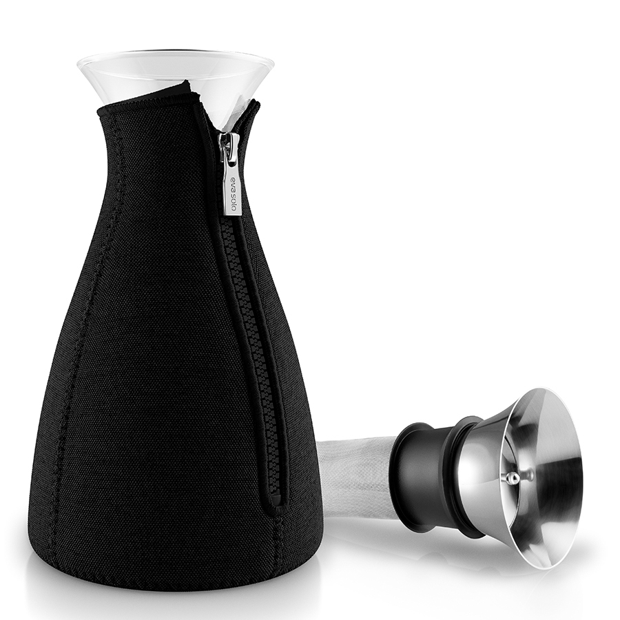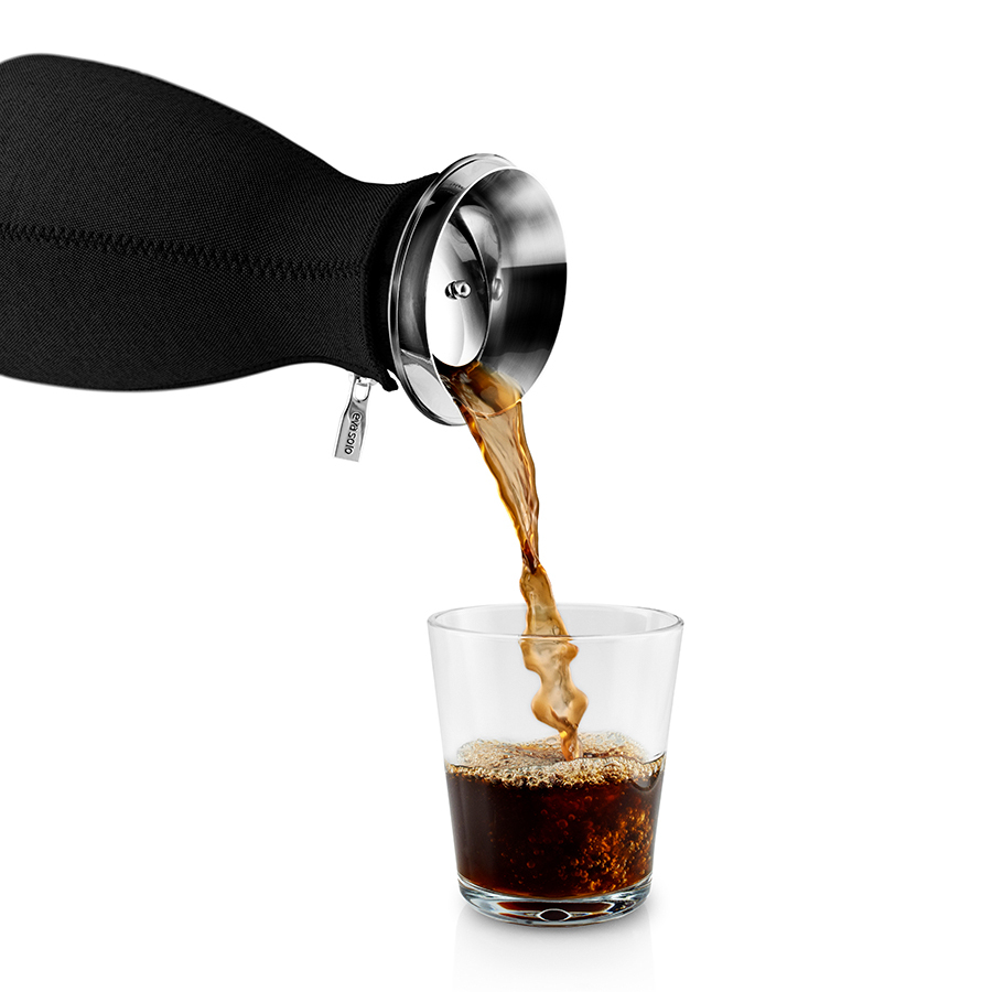 Колба имеет объем 1 л, выполнена из прочного боросиликатного стекла, благодаря чему выдерживает температурный диапазон от -70 С° до 530 С°. Широкое горлышко drip-free не допускает разбрызгивания капель при наливании. Светло-серый неопреновый чехол на молнии позволяет напитку как можно дольше оставаться горячим.