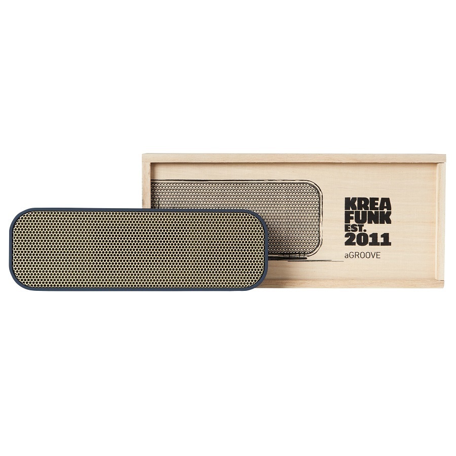 Легкая беспроводная колонка со встроенным аккумулятором. Подключается к смартфону через Bluetooth или с помощью кабеля (mini-jack), который входит в комплект. Колонка также совместима с любым устройством, оснащенным Bluetooth-гарнитурой. Простой, лаконичный и стильный дизайн. Корпус колонки имеет покрытие soft touch, приятное на ощупь, а внутри встроен микрофон для совершения hands free звонков. Благодаря компактному размеру aGROOVE легко брать с собой, а качественные компоненты дают чистый и насыщенный звук. Время работы без подзарядки – до 20 часов (при 80% громкости). Поставляется в стильной деревянной коробке, которую украшают слова известного американского радиоведущего Джорджа Еллинека: «История человечества – это история его песен». Технические характеристики: Встроенный аккумулятор (Li-ion) 500 мA/ч Bluetooth 3.0 EDR standard stereo technique Напряжение при зарядке: DC-5.0В – USB-Кабель. Зарядный ток: 1-2 A (Max). Рабочее напряжение: 3.7-4.2В Мощность: 3Вт * 2 Сопротивление колонок: 4 Ом (?) Продолжительность зарядки: 2-3 часа В комплекте USB + AUX-кабель, кабель mini-jack (3.5мм) Международные сертификаты: CE, FCC, RoHS, WEEE
