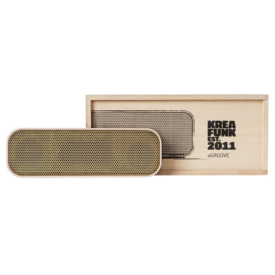 Легкая беспроводная колонка со встроенным аккумулятором. Подключается к смартфону через Bluetooth или с помощью кабеля (mini-jack), который входит в комплект. Колонка также совместима с любым устройством, оснащенным Bluetooth-гарнитурой. Простой, лаконичный и стильный дизайн. Корпус колонки имеет покрытие soft touch, приятное на ощупь, а внутри встроен микрофон для совершения hands free звонков. Благодаря компактному размеру aGROOVE легко брать с собой, а качественные компоненты дают чистый и насыщенный звук. Время работы без подзарядки – до 20 часов (при 80% громкости). Поставляется в стильной деревянной коробке, которую украшают слова известного американского радиоведущего Джорджа Еллинека: «История человечества – это история его песен». Технические характеристики: Встроенный аккумулятор (Li-ion) 500 мA/ч Bluetooth 3.0 EDR standard stereo technique Напряжение при зарядке: DC-5.0В – USB-Кабель. Зарядный ток: 1-2 A (Max). Рабочее напряжение: 3.7-4.2В Мощность: 3Вт * 2 Сопротивление колонок: 4 Ом (?) Продолжительность зарядки: 2-3 часа В комплекте USB + AUX-кабель, кабель mini-jack (3.5мм) Международные сертификаты: CE, FCC, RoHS, WEEE
