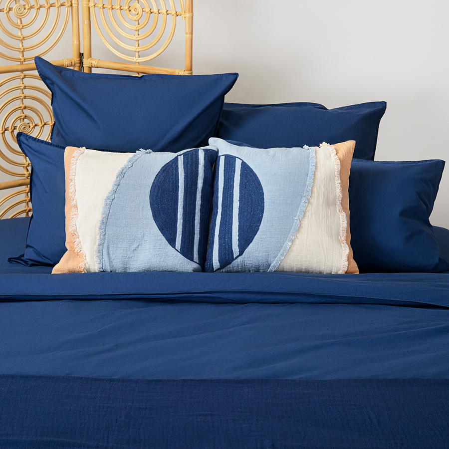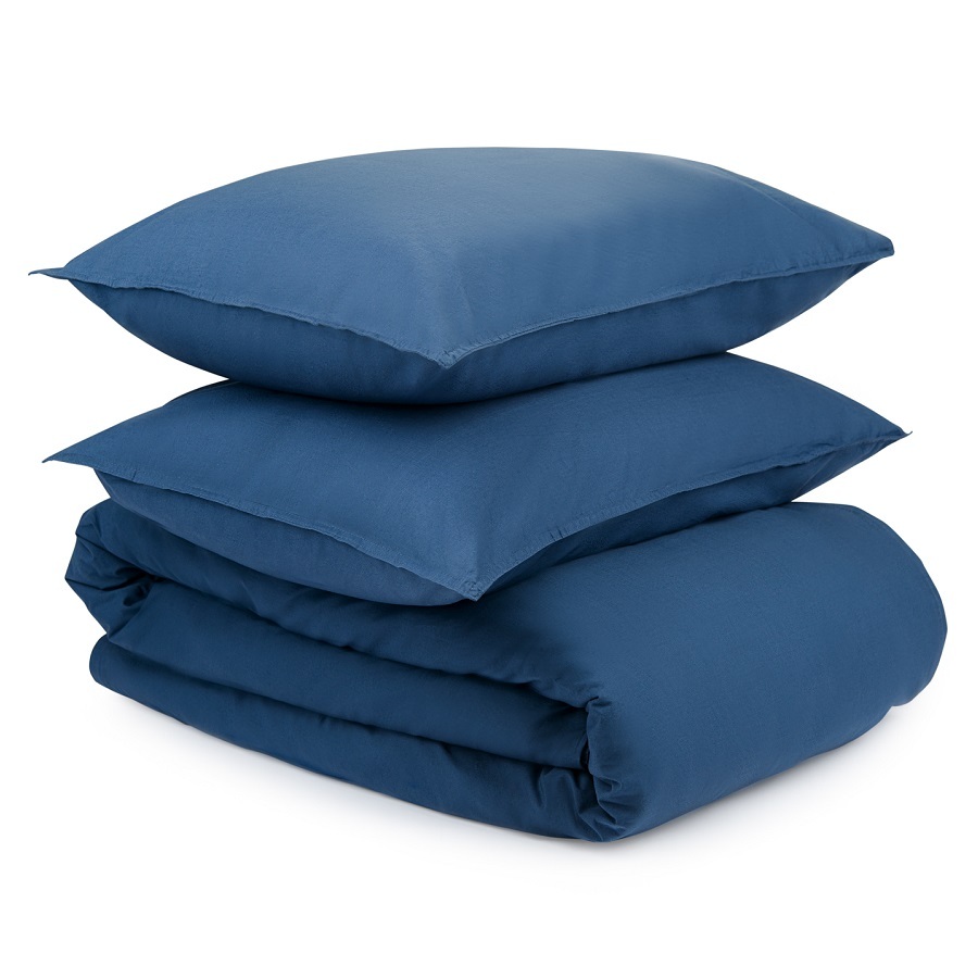 Комплект постельного белья темно-синего цвета из органического стираного хлопка из коллекции Essential станет стильным акцентом в интерьере спальни. Стираный перкаль — красивый материал, который отличается мягкостью. Он получается особым способом пряжи – нити переплетаются крест на крест, что придает ткани дополнительную прочность. Перкаль создает ощущение прохлады в летнюю жару и сохраняет тепло зимними ночами. Он не деформируется, не линяет, и на нем не образуются катышки. Подходит для повседневного использования.