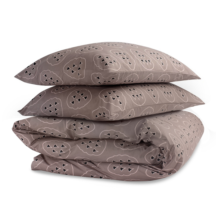Для производства постельного белья, декорированного авторским принтом «Симметрия леса», дизайнеры использовали мягкий, приятный на ощупь перкаль. Этот хлопковый материал отличается особым способом пряжи – нити переплетаются крест на крест, что придает ткани дополнительную прочность. Перкаль создает ощущение прохлады в жаркие летние дни и аккумулирует тепло зимними ночами. Гипоаллергенные, простые в уходе изделия станут отличным вариантом для повседневного использования. Контрастный узор с мотивами русского севера добавит ноту национального колорита в ваш интерьер.