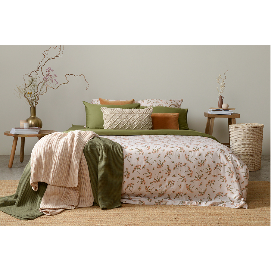В комплекте: пододеяльник 200х220 см, застегивающийся на пуговицы, и две наволочки 50х70 см с системой закрытия клапан.