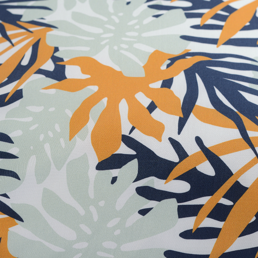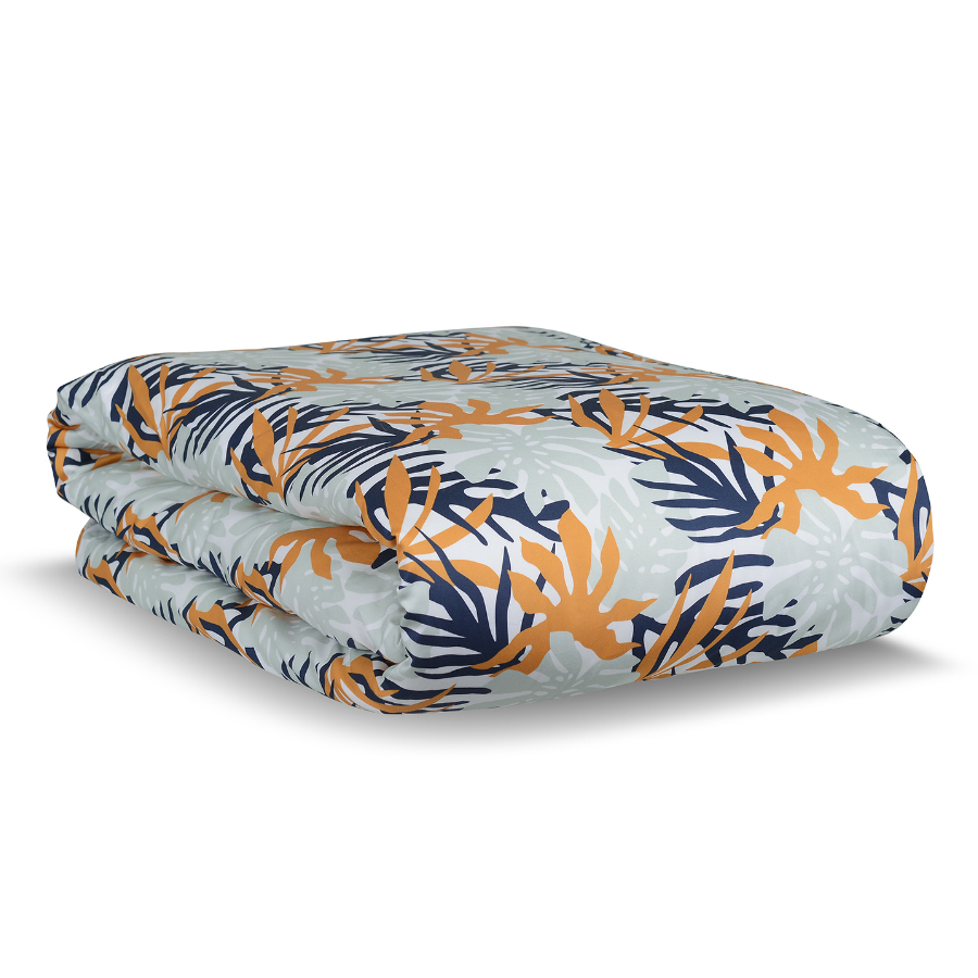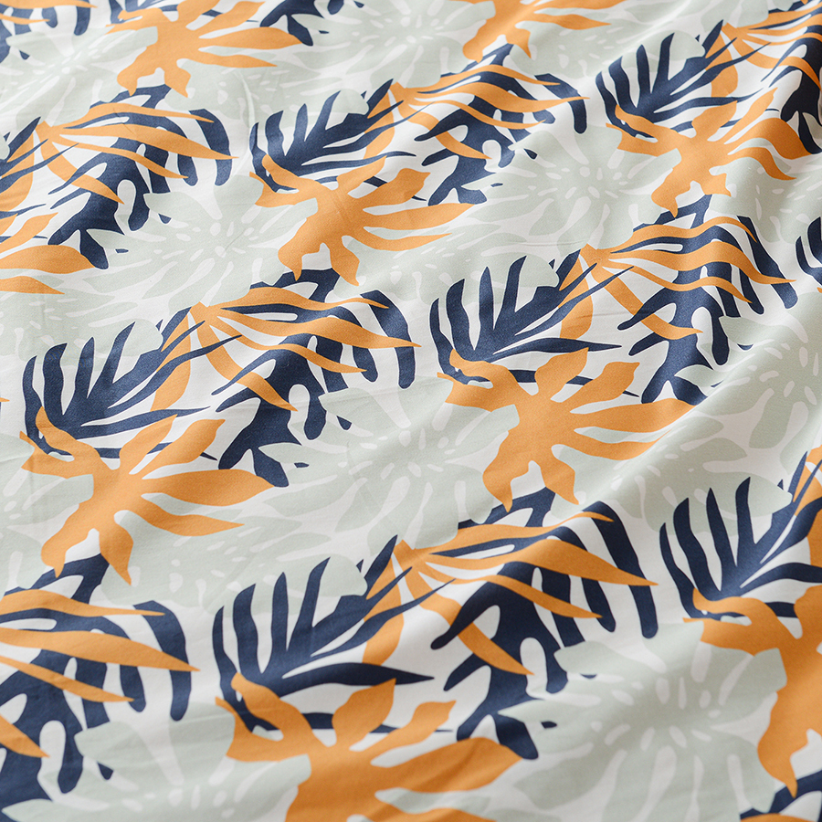 Комплект постельного белья из сатина с принтом Leaves из коллекции Wild - отличный выбор для любителей ярких растительных рисунков. Разбавив его наволочками и простыней цвета шафрана или мятного оттенка, вы получите готовое дизайнерское решение для вашей спальни. Хлопковый сатин плотностью 210 ТС приятен на ощупь и обладает естественным блеском. Он не теряет внешний вид даже после множества стирок, не деформируется и не линяет, на нем не образуются катышки.