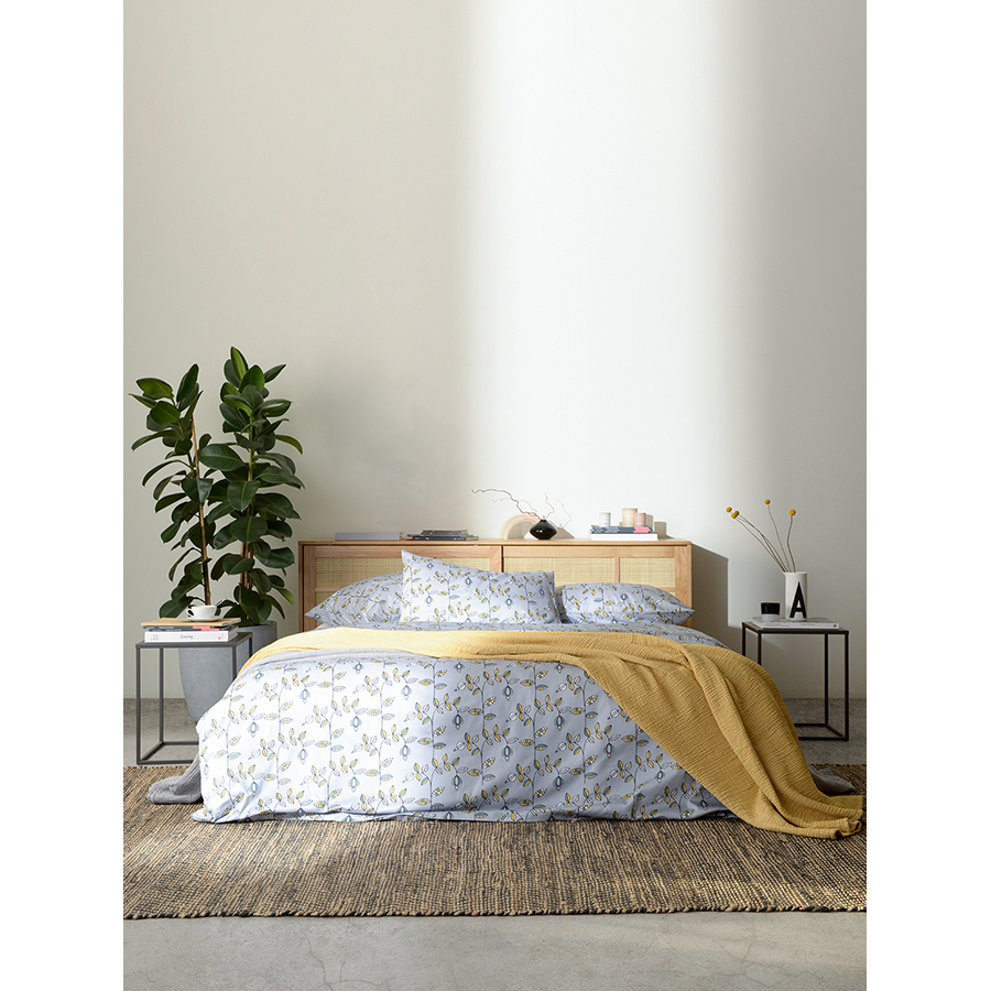 Комплект постельного белья из сатина с растительным принтом "Ягоды тайги" из коллекции Russian North добавит атмосферу природы русского севера в ваш интерьер. Разбавив его наволочками и простыней светло-серого или горчичного цветов из коллекции Essential, вы получите готовое дизайнерское решение для вашей спальни. Хлопковый сатин плотностью 210 ТС приятен на ощупь и обладает естественным блеском. Он не теряет внешний вид даже после множества стирок, не деформируется и не линяет, на нем не образуются катышки.