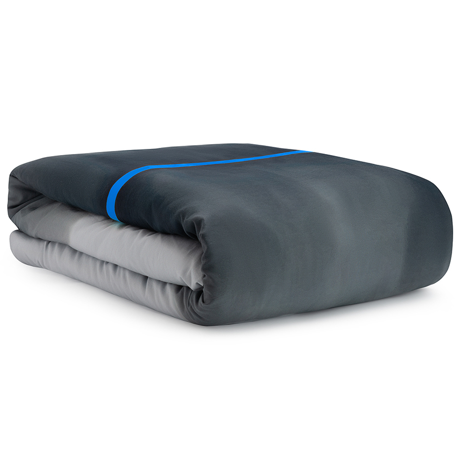 Комплект постельного белья из умягченного сатина из коллекции Slow Motion, Electric Blue с авторским принтом, напоминающим игру света и теней в пространстве по-настоящему освежит интерьер спальни. Симметрия, плавные волны и яркая линия на пододеяльнике создают ощущение умиротворения. Умягченный хлопковый сатин плотностью 300 ТС очень похож на шелк. Он мягкий на ощупь, не теряет внешний вид после множества стирок, не линяет и на нем не образуются катышки. Подходит для повседневного использования. Линейка Slow Motion - вторая коллаборация с предметным дизайнером Димой Логиновым.
