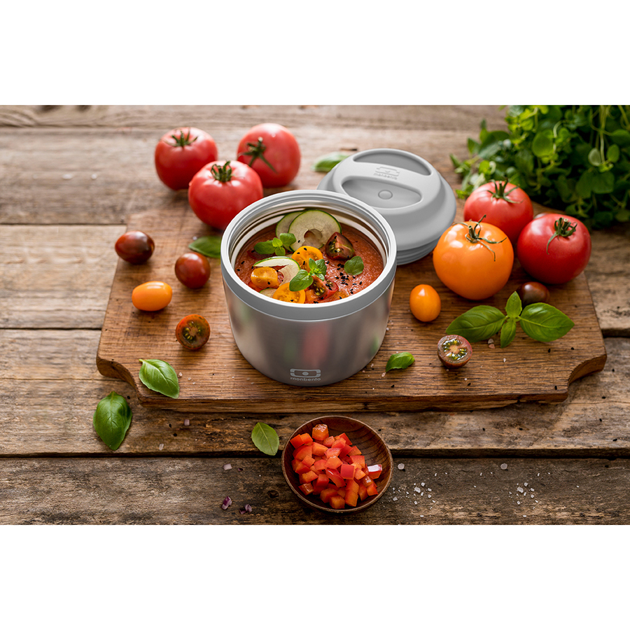 Компактный аксессуар округлой формы поместится в любую сумку. Герметичная крышка с силиконовой резьбой и корпус из нержавеющей стали помогут сохранить продукты свежими.