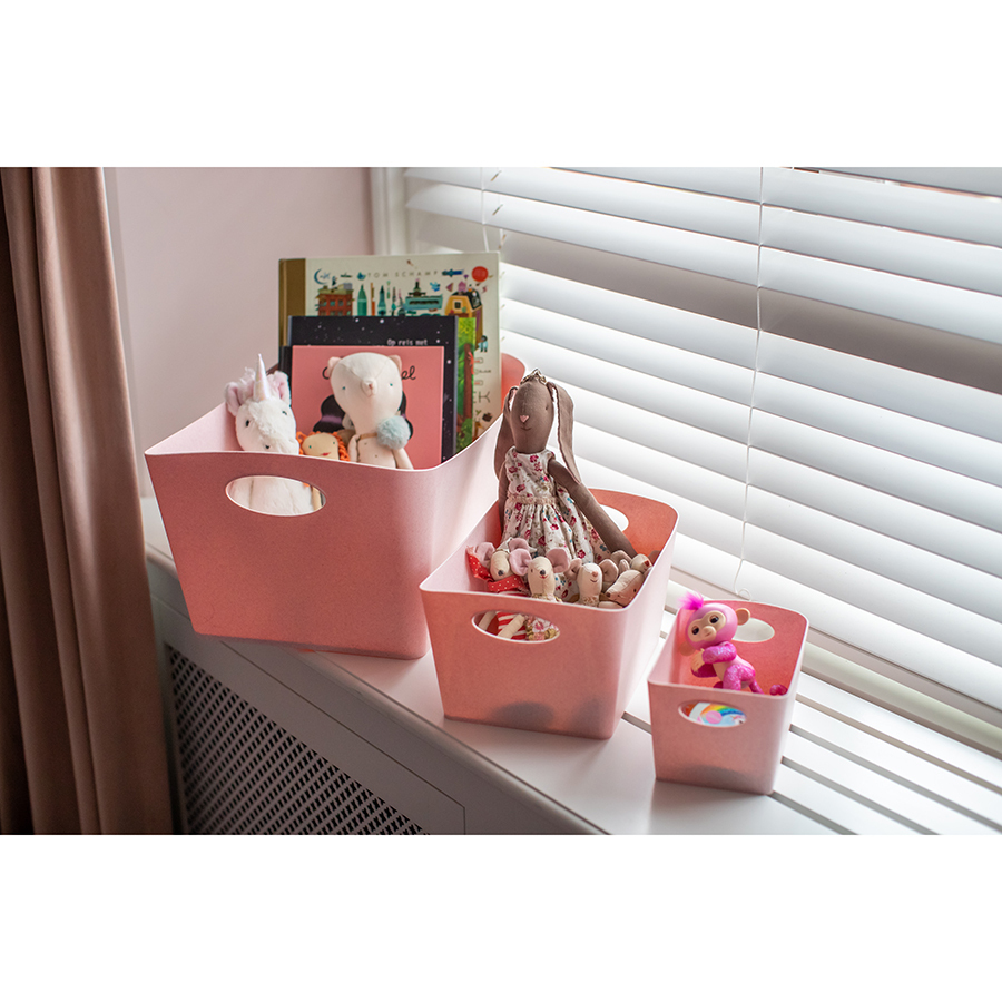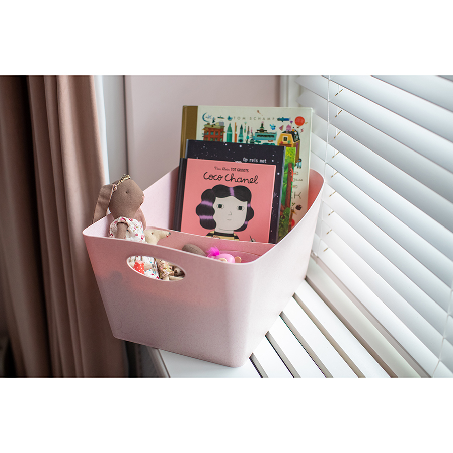 Вместительный контейнер с удобными ручками подходит для переноски одежды, полотенец, постельного белья, хранения игрушек и прочих аксессуаров. Он также может служить корзиной для белья или вовсе конейнером для отходов.