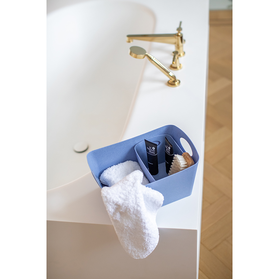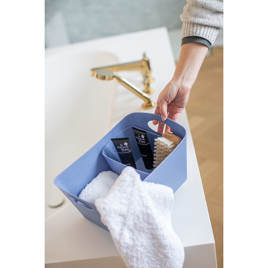 Контейнер с удобными ручками подходит для переноски одежды, полотенец, постельного белья, хранения игрушек и прочих аксессуаров. Он также может служить корзиной для белья или вовсе конейнером для отходов.