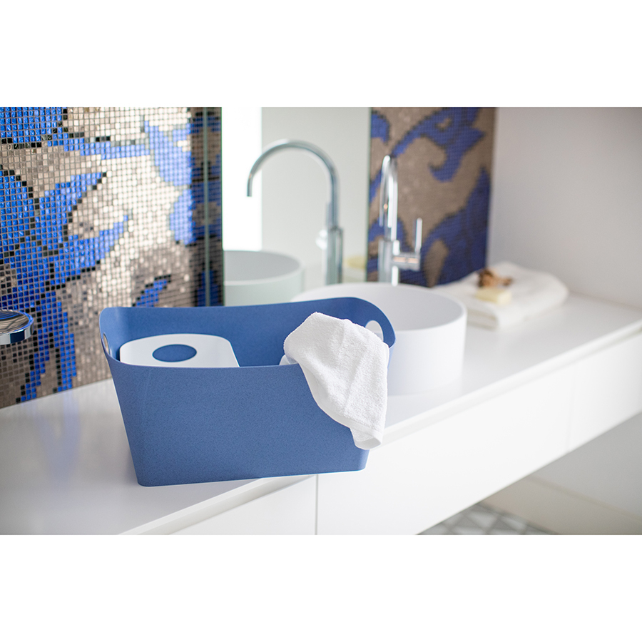 Вместительный контейнер с удобными ручками подходит для переноски одежды, полотенец, постельного белья, хранения игрушек и прочих аксессуаров. Он также может служить корзиной для белья или вовсе конейнером для отходов.