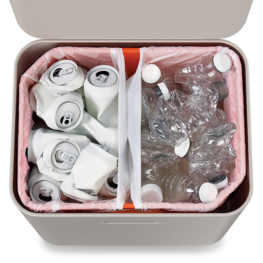 Контейнер для мусора с двумя баками разработан для облегчения задачи сортировки и утилизации самых разных типов мусора: пластика, стекла, пищевых отходов.