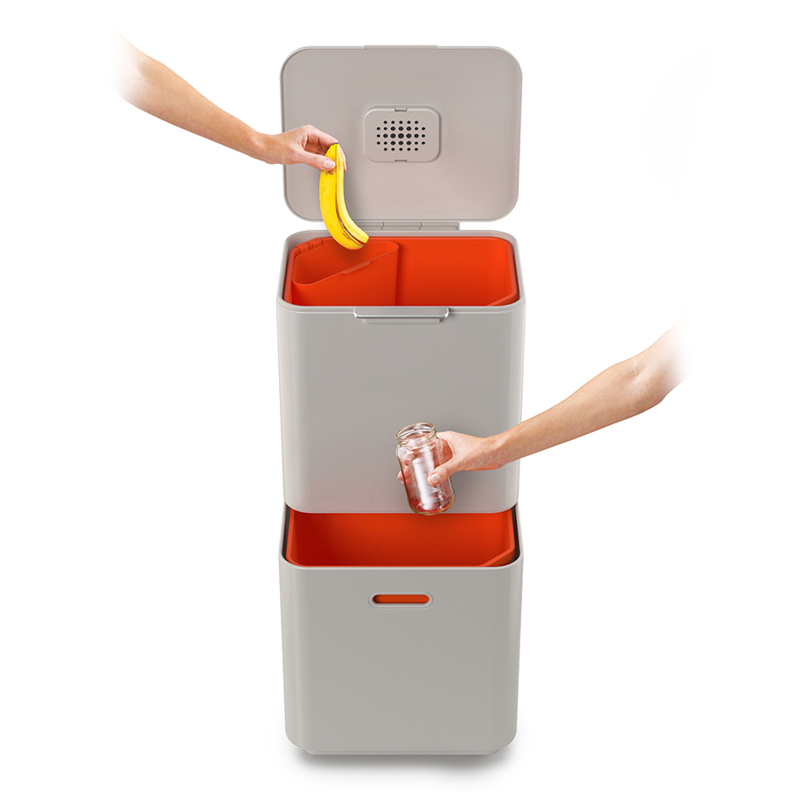 Вертикальное расположение баков позволит максимально сэкономить пространство на кухне. Отделения представляют собой вместительные контейнеры из низкоуглеродистой стали, для которых можно использовать как стандартные, так и специально разработанные пакеты. Конструкция позволяет надежно закреплять внутри мусорные пакеты, а вентилируемые отверстия помогают быстро извлекать их по мере наполнения. Верхний бак дополнен съемным контейнером для пищевых отходов, который плотно закрывается крышкой. Хранить его можно как внутри отсека, так и на рабочей поверхности. Нижний бак может использоваться не только для накопления мусора, но и хранения пакетов и хозяйственных принадлежностей. Внешняя крышка снабжена удобной кнопкой для легкого открывания контейнера. Также внутри нее крепится угольный фильтр, который эффективно блокирует неприятные запахи. К контейнеру Totem Compact можно отдельно приобрести сменные фильтры и мусорные пакеты IW6 и IW2. Общий объем: 60 л. Гарантия производителя: 10 лет.