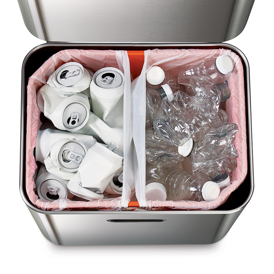 Контейнер для мусора с двумя баками разработан для облегчения задачи сортировки и утилизации самых разных типов мусора: пластика, стекла, пищевых отходов.