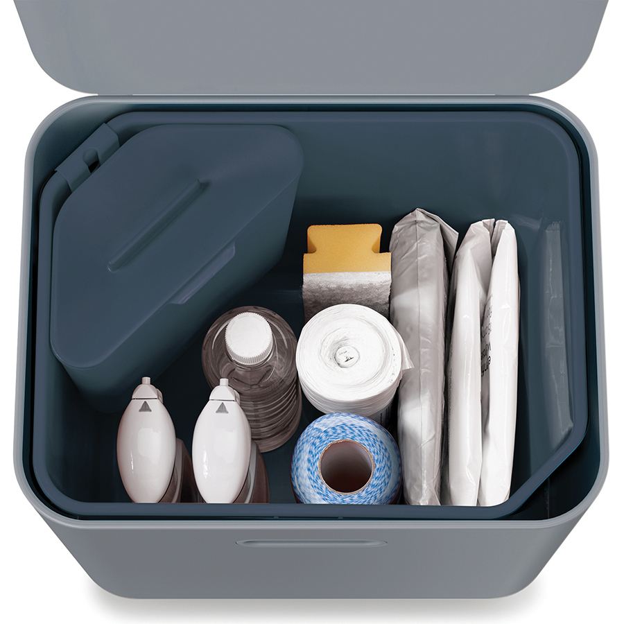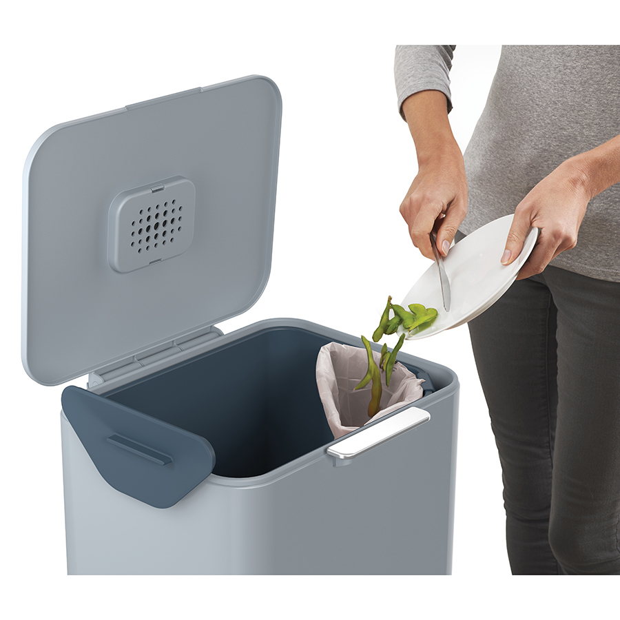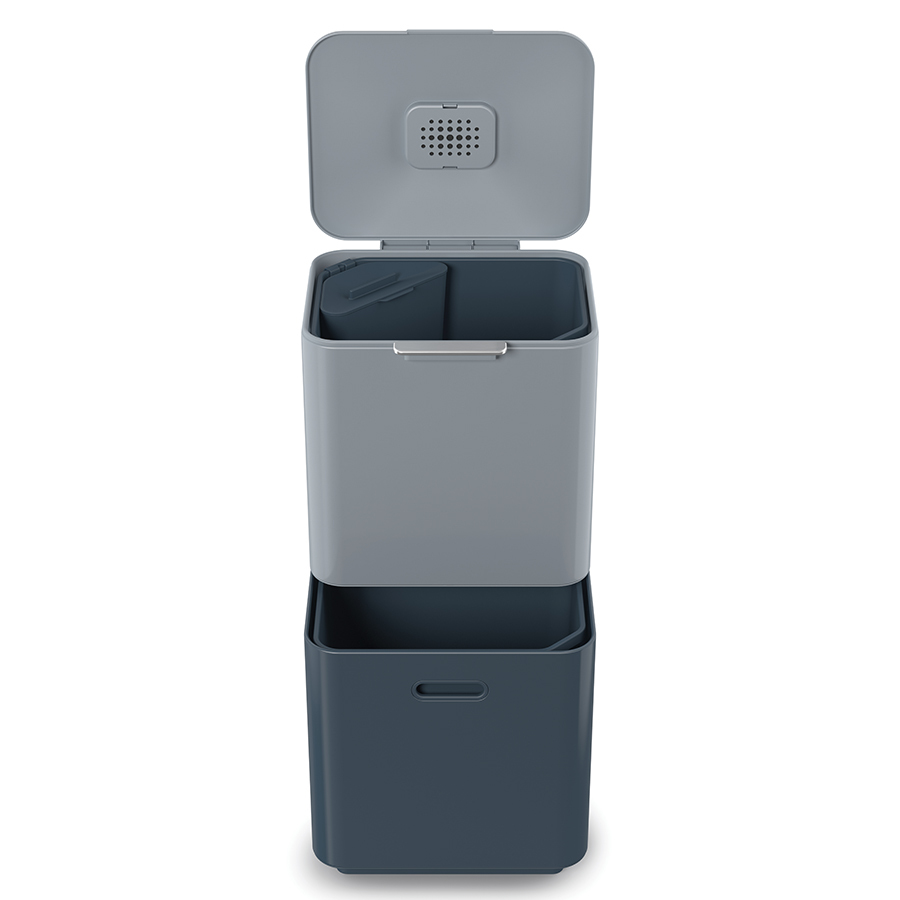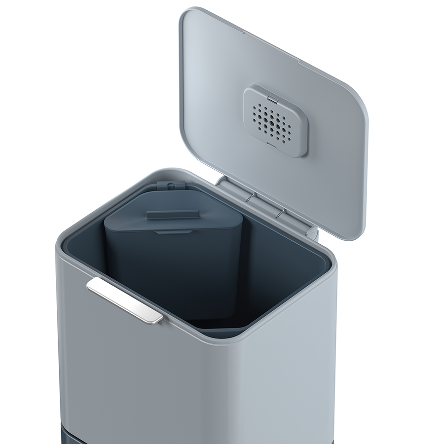 Вертикальное расположение баков позволит максимально сэкономить пространство на кухне. Отделения представляют собой вместительные контейнеры из низкоуглеродистой стали, для которых можно использовать как стандартные, так и специально разработанные пакеты. Конструкция позволяет надежно закреплять внутри мусорные пакеты, а вентилируемые отверстия помогают быстро извлекать их по мере наполнения. Верхний бак дополнен съемным контейнером для пищевых отходов, который плотно закрывается крышкой. Хранить его можно как внутри отсека, так и на рабочей поверхности. Нижний бак может использоваться не только для накопления мусора, но и хранения пакетов и хозяйственных принадлежностей. Внешняя крышка снабжена удобной кнопкой для легкого открывания контейнера. Также внутри нее крепится угольный фильтр, который эффективно блокирует неприятные запахи. К контейнеру Totem Compact можно отдельно приобрести сменные фильтры и мусорные пакеты IW6 и IW2. Общий объем: 60 л. Гарантия производителя: 10 лет.