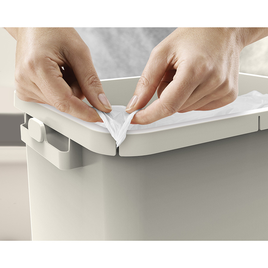 Вертикальное расположение баков позволит максимально сэкономить пространство в помещении. Отделения представляют собой вместительные стальные контейнеры объемом по 30 л, для которых можно использовать как стандартные, так и специально разработанные пакеты. Конструкция позволяет надежно закреплять внутри мусорные пакеты, а вентилируемые отверстия помогают быстро извлекать их по мере наполнения. Верхний бак дополнен съемным ведром с отверстиями и крючками для крепления мусорных пакетов. Нижний бак можно использовать не только для накопления мусора, но и хранения пакетов и хозяйственных принадлежностей. Внешняя крышка снабжена удобной кнопкой для легкого открывания контейнера. Также внутри нее крепится угольный фильтр, который эффективно блокирует неприятные запахи. К контейнеру Totem Pop можно отдельно приобрести сменные фильтры и мусорные пакеты IW6. Замену фильтра от запаха рекомендуется производить каждые 3 месяца. Общий объем: 60 л. Гарантия производителя: 10 лет.