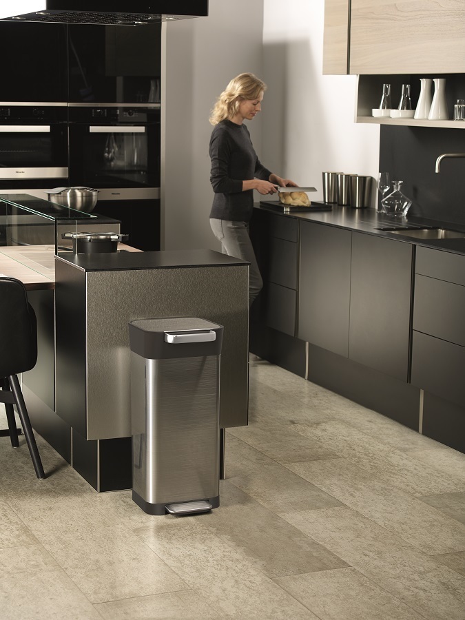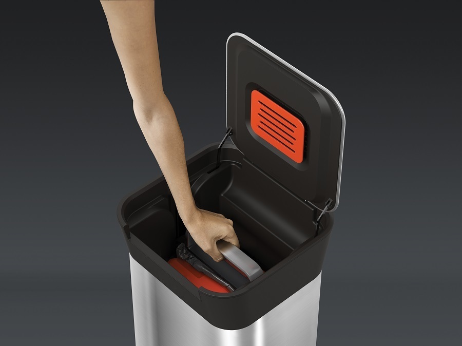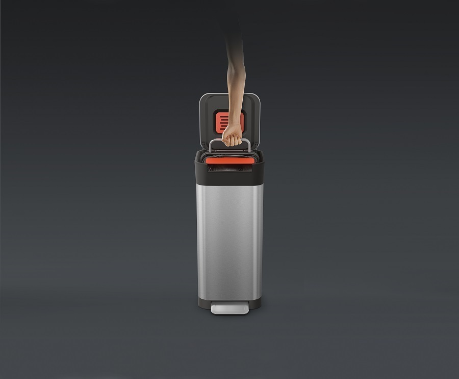 Контейнер Titan — настоящая инновация в области сортировки мусора. Гигиеничная система для уплотнения мусора повышает вместимость в 3 раза по сравнению с другими контейнерами такого же объёма. Угольный фильтр на крышке не дает неприятному запаху распространится по кухне. С помощью удобной педали отсутствует прямой контакт с мусором, при нажатии на неё бесшумно и легко открывается крышка. Пакеты для мусора теперь можно реже менять за счет утрамбовывания мусора. Конструкция плотно удерживает пакет, но не рвёт его. Это предотвращает прямой контакт с мусором. Вентиляционные отверстия дают возможность легко вынимать полный пакет. Удобство эксплуатации делает этот контейнер простым и полезным устройством, необходимым для большой семьи. Контейнер выдерживает многократную (более 100 000 раз) нагрузку при нажиме до 40 кг. Благодаря функциональному дизайну и компактным размерам контейнера экономить место на кухне стало гораздо проще. Стальной корпус и плавная форма делает его отличным дополнением любого интерьера. В комплект также входит: • Инструкция по эксплуатации • 3 специальных мусорных пакета • 1 сменный угольный фильтр