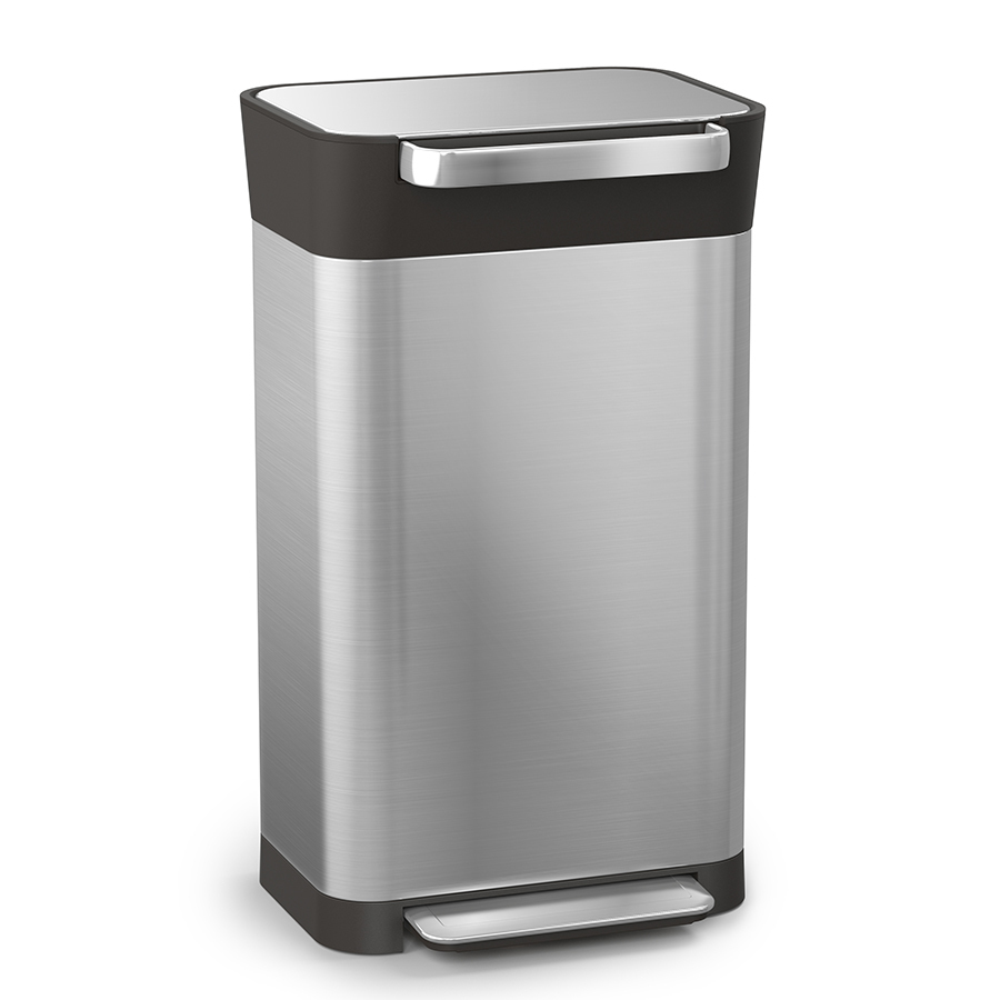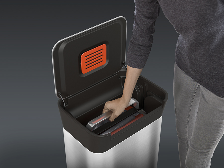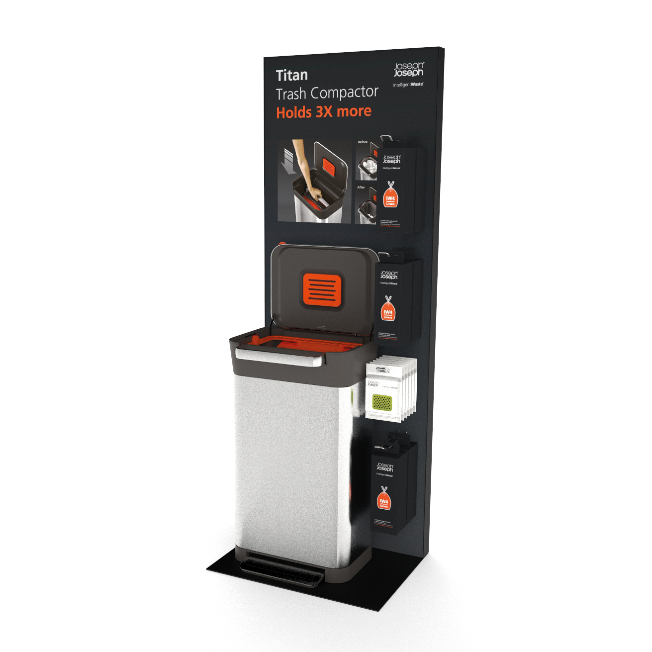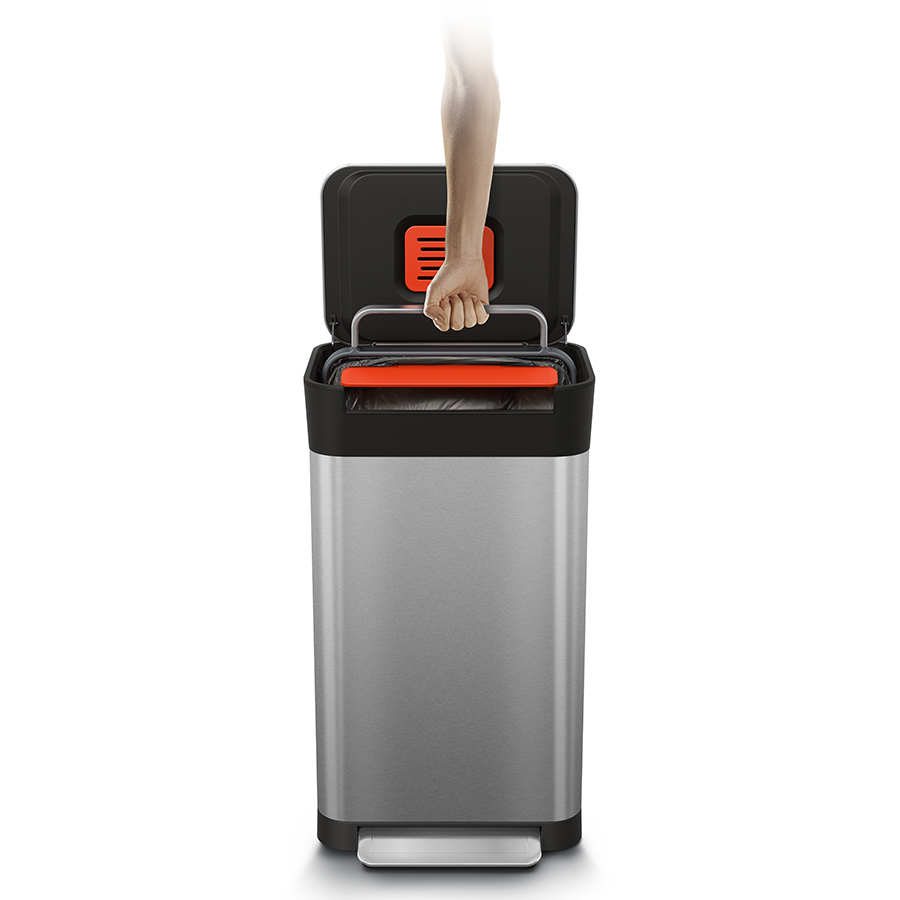 Контейнер Titan — настоящая инновация в области сортировки мусора. Гигиеничная система для уплотнения мусора повышает вместимость в 3 раза по сравнению с другими контейнерами такого же объёма. Угольный фильтр на крышке не дает неприятному запаху распространится по кухне. С помощью удобной педали отсутствует прямой контакт с мусором, при нажатии на неё бесшумно и легко открывается крышка. Пакеты для мусора теперь можно реже менять за счет утрамбовывания мусора. Конструкция плотно удерживает пакет, но не рвёт его. Это предотвращает прямой контакт с мусором. Вентиляционные отверстия дают возможность легко вынимать полный пакет. Удобство эксплуатации делает этот контейнер простым и полезным устройством, необходимым для большой семьи. Контейнер выдерживает многократную (более 100 000 раз) нагрузку при нажиме до 40 кг. Благодаря функциональному дизайну и компактным размерам контейнера экономить место на кухне стало гораздо проще. Стальной корпус и плавная форма делает его отличным дополнением любого интерьера. В комплект также входит: • Инструкция по эксплуатации • 3 специальных мусорных пакета • 1 сменный угольный фильтр