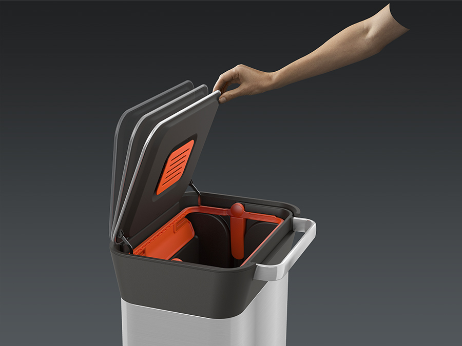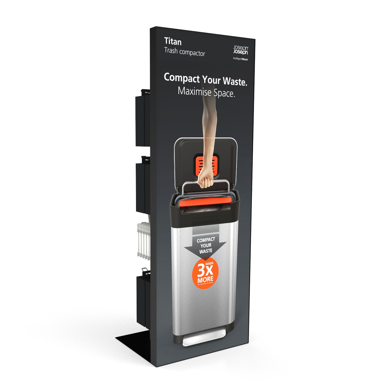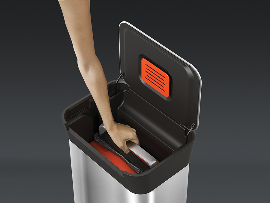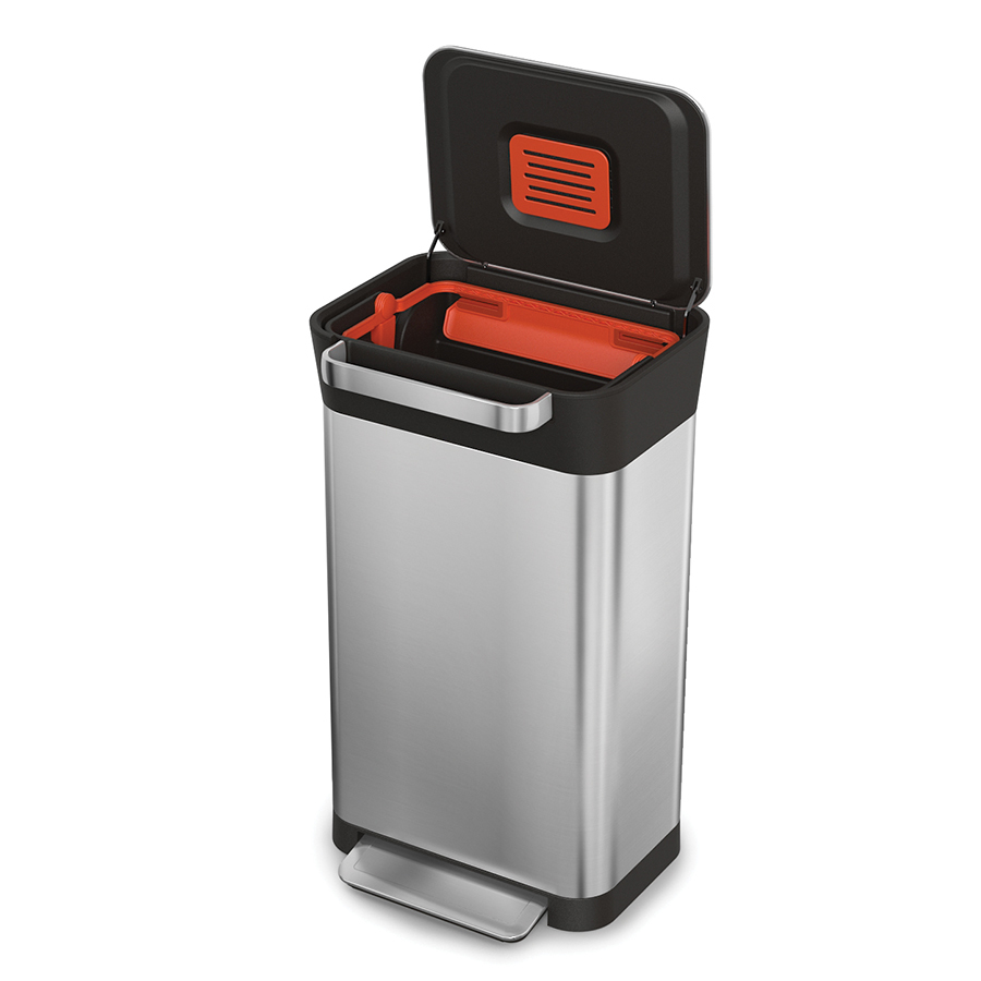 Контейнер Titan — настоящая инновация в области сортировки мусора. Гигиеничная система для уплотнения мусора повышает вместимость в 3 раза по сравнению с другими контейнерами такого же объёма. Угольный фильтр на крышке не дает неприятному запаху распространится по кухне. С помощью удобной педали отсутствует прямой контакт с мусором, при нажатии на неё бесшумно и легко открывается крышка. Пакеты для мусора теперь можно реже менять за счет утрамбовывания мусора. Конструкция плотно удерживает пакет, но не рвёт его. Это предотвращает прямой контакт с мусором. Вентиляционные отверстия дают возможность легко вынимать полный пакет. Удобство эксплуатации делает этот контейнер простым и полезным устройством, необходимым для большой семьи. Контейнер выдерживает многократную (более 100 000 раз) нагрузку при нажиме до 40 кг. Благодаря функциональному дизайну и компактным размерам контейнера экономить место на кухне стало гораздо проще. Стальной корпус и плавная форма делает его отличным дополнением любого интерьера. В комплект также входит: • Инструкция по эксплуатации • 3 специальных мусорных пакета • 1 сменный угольный фильтр