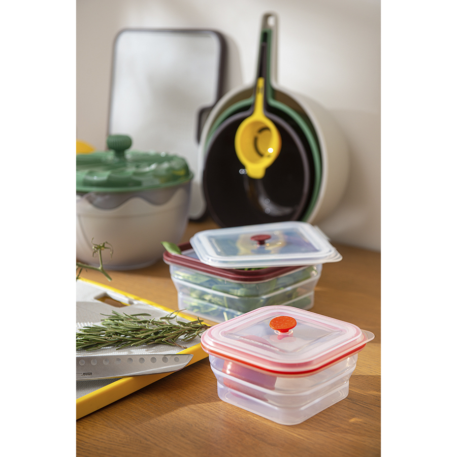 Материал: пищевой силикон. Размеры: 13,5х13,5х7 см. Размеры в сложенном виде: 13.5х13,5х3,2 см. Объем: 600 мл. Цвет: красный.