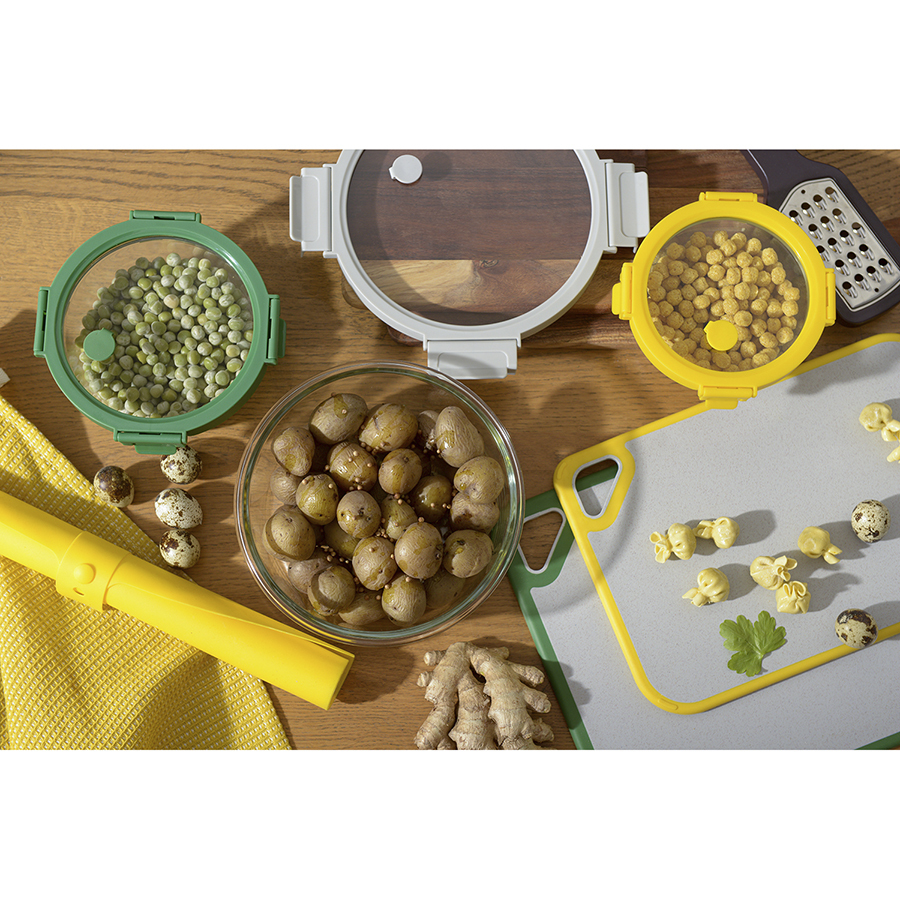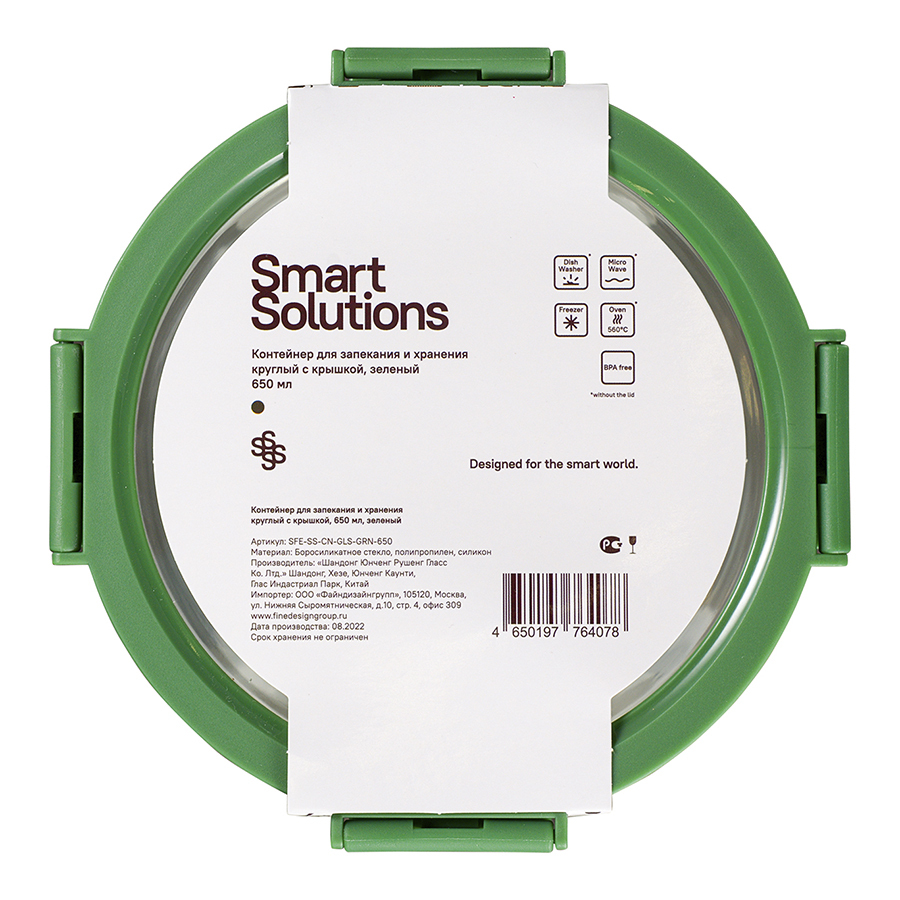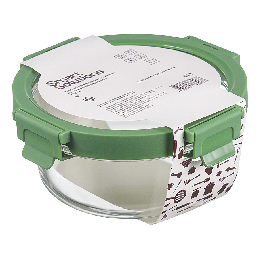 Контейнер круглый от бренда Smart Solution – готовое решение для хранения продуктов и приготовления различных блюд в духовке. Емкость из прочного боросиликатного стекла не боится перепадов температуры, обладает устойчивостью к износу и химическим воздействиям, легко моется. Материал не содержит токсинов и бисфенола-А, не имеет запаха, не меняет вкус еды. Крышка защищает содержимое от заветривания и попадания внутрь посторонних предметов. Наличие специального вентиляционного отверстия позволяет выпустить из контейнера лишний воздух или горячий пар, что повышает герметичность и улучшает условия хранения продуктов.